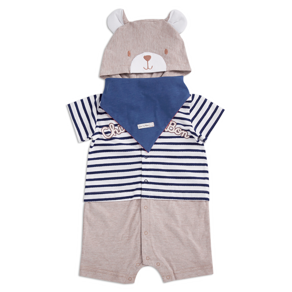 Chic a Bon 嬰幼童裝 熊熊造型短袖兔裝/連身衣-附雙面領巾(6-18個月)
