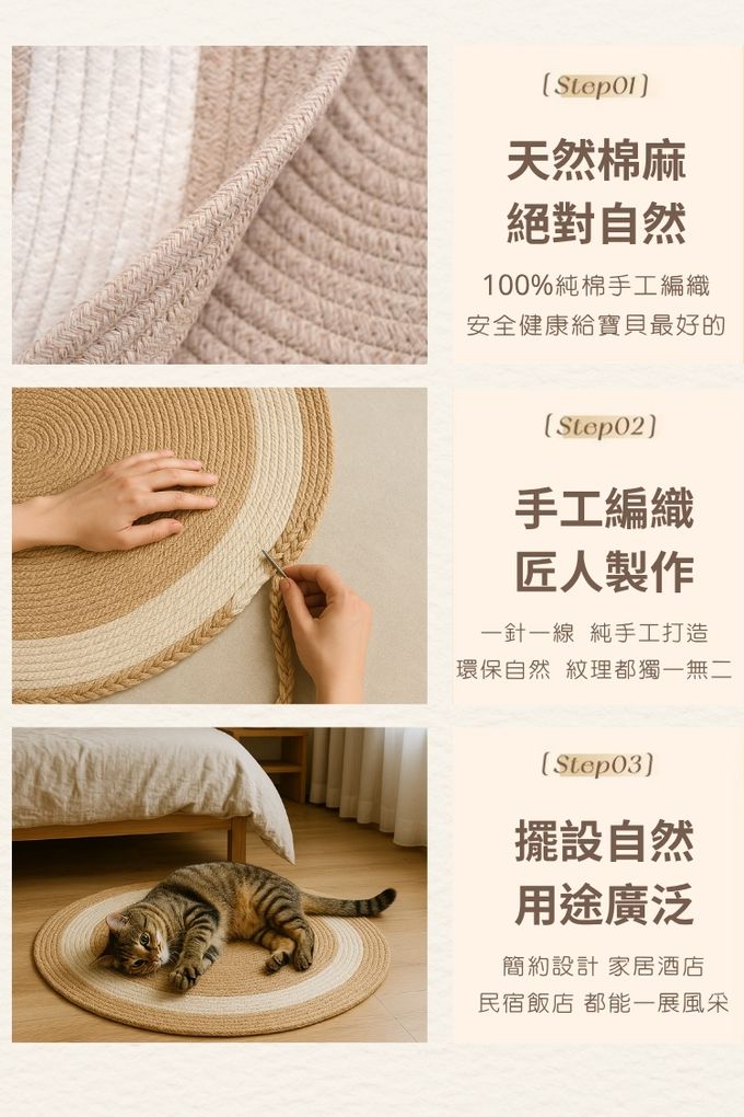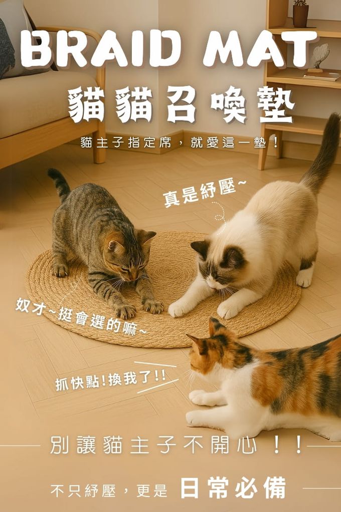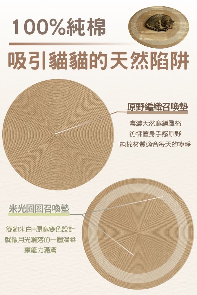 貓貓召喚墊-米光圈圈/原野編織-直徑80cm