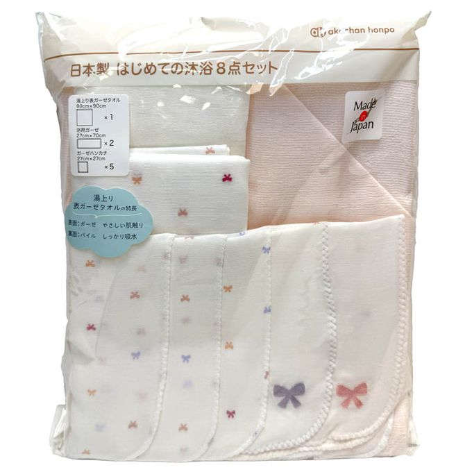 日本製新生兒沐浴巾組-蝴蝶結-粉紅色