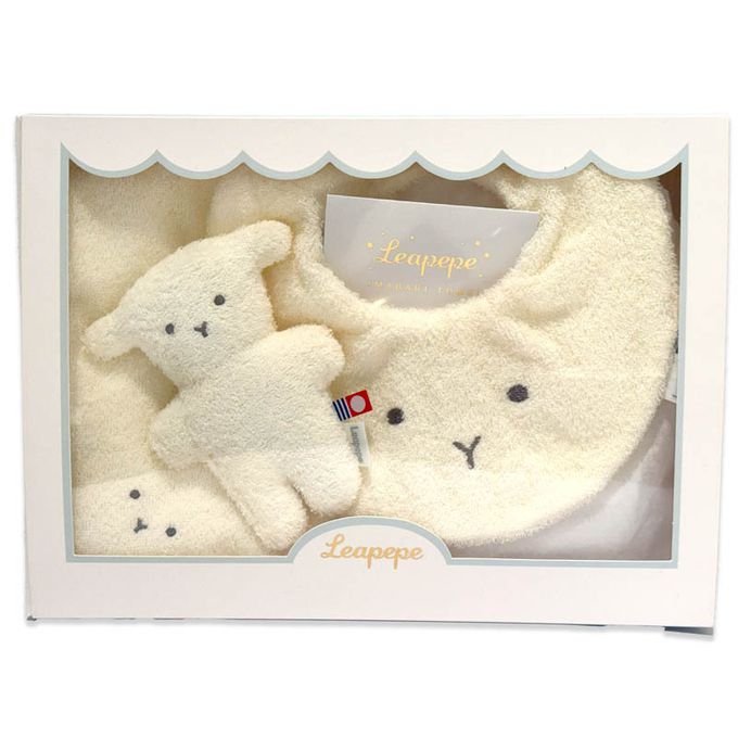 今治毛巾 圍兜&手搖鈴&手帕組-綿羊-日本製