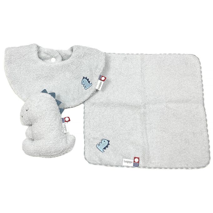 今治毛巾 圍兜&手搖鈴&手帕組-恐龍-日本製