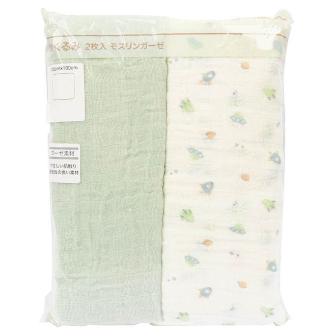 akachan honpo - 包巾2件組-穆斯林棉紗 宇宙-綠色 (100cm×100cm)