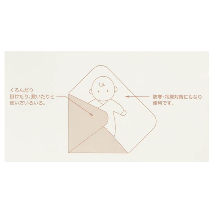 可當作嬰兒推車的膝蓋毯、午睡毯、洗澡後的浴巾,或對折後作為尿布墊等。