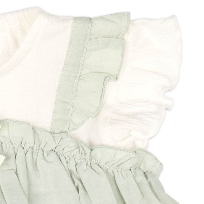 材質:本體:聚酯纖維66%棉33%聚胺基甲酸酯1%裙子荷葉邊部分:棉100%