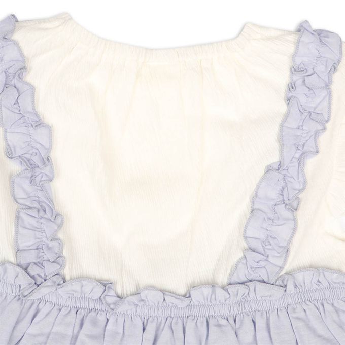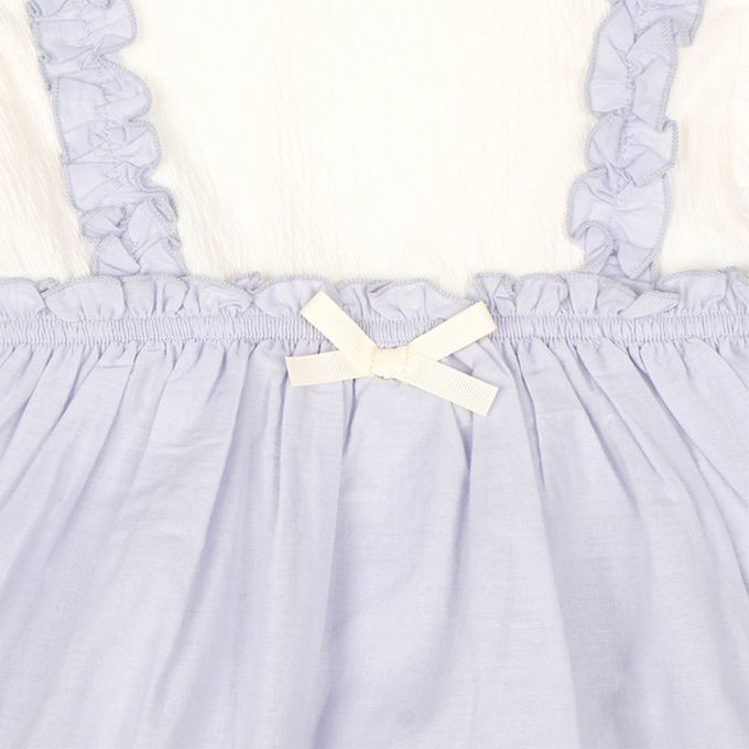 材質:本體:聚酯纖維66%棉33%聚胺基甲酸酯1%裙子荷葉邊部分:棉100%
