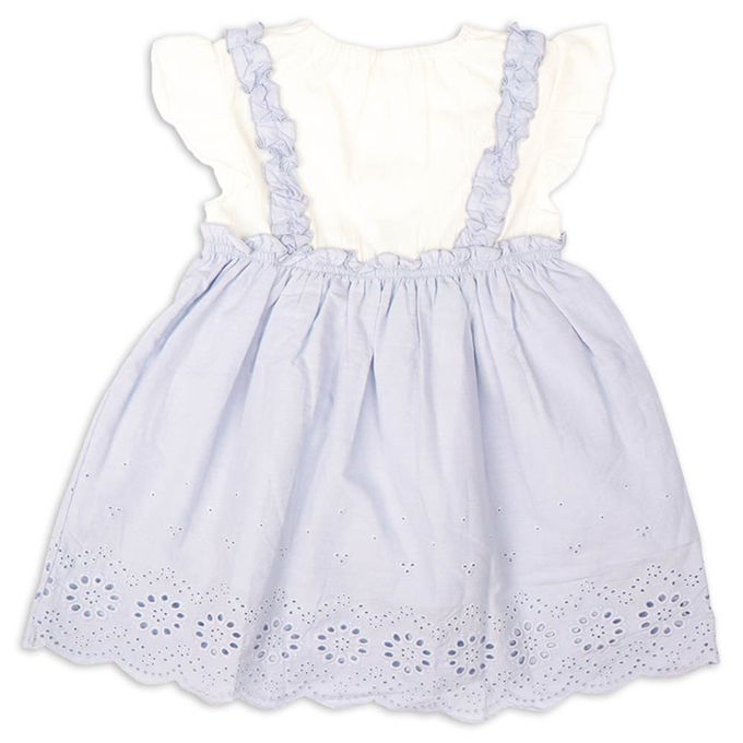 短袖洋裝-蕾絲拼接-淺藍色