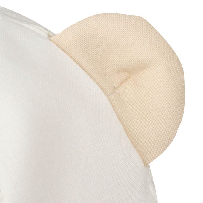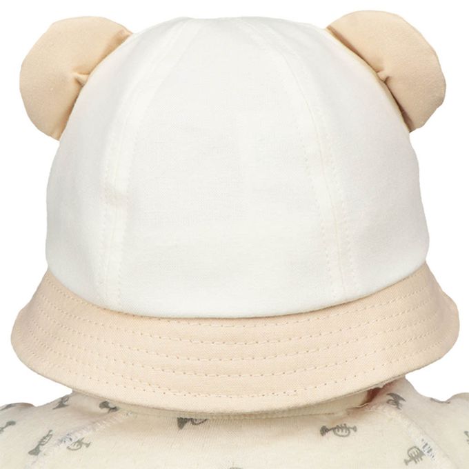 下巴的鬆緊帶用棉布包覆住,因此不會刺激小寶寶的肌膚。