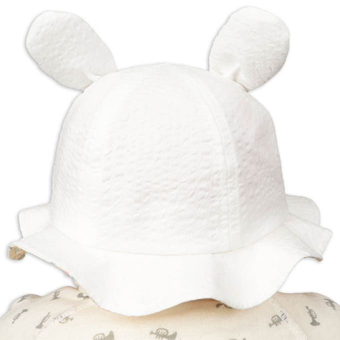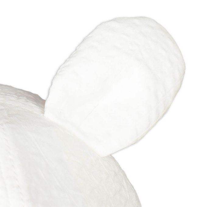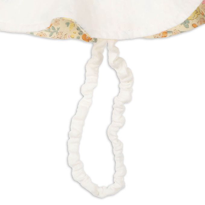 下巴的鬆緊帶用棉布包覆住,因此不會刺激小寶寶的肌膚。