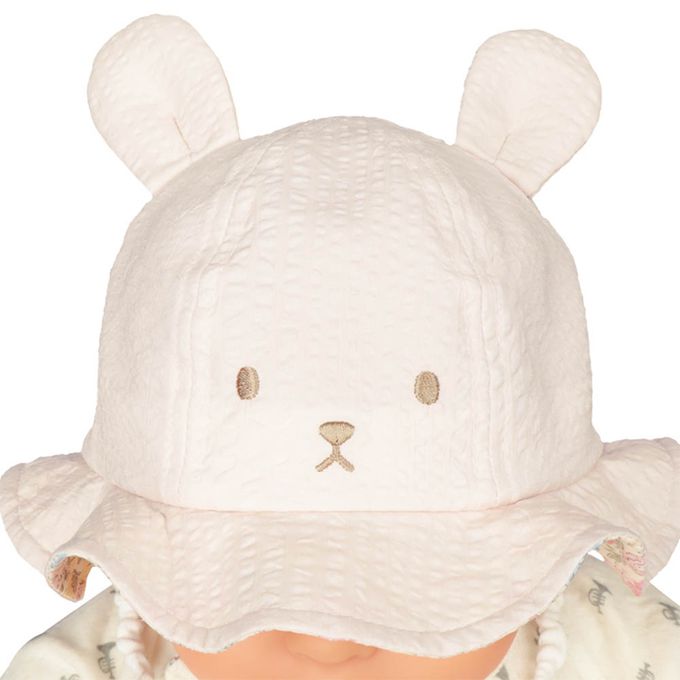 下巴的鬆緊帶用棉布包覆住,因此不會刺激小寶寶的肌膚。