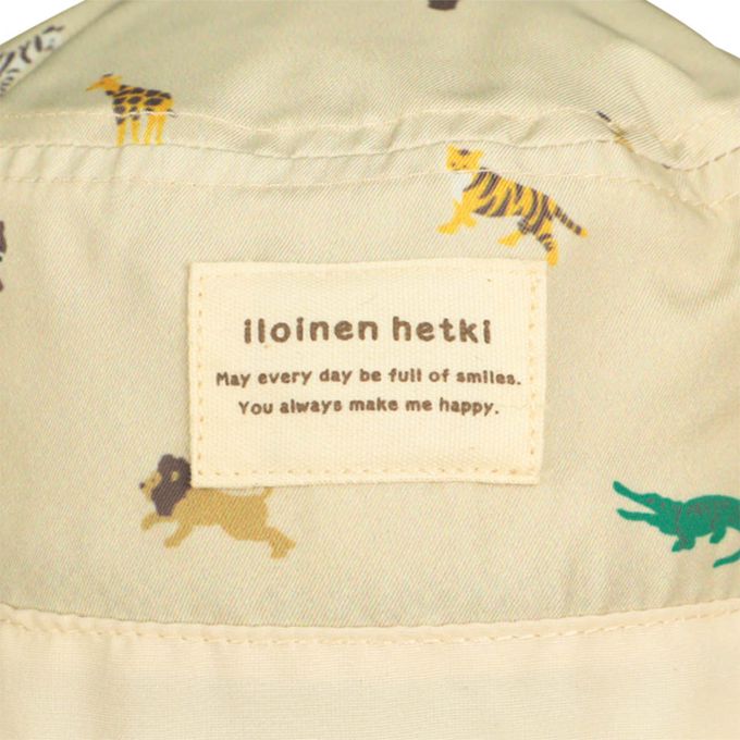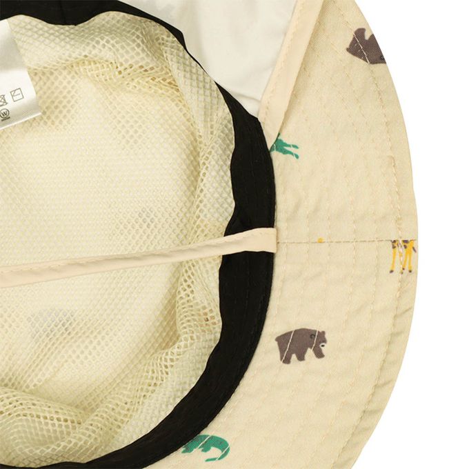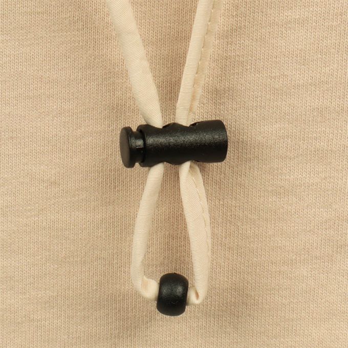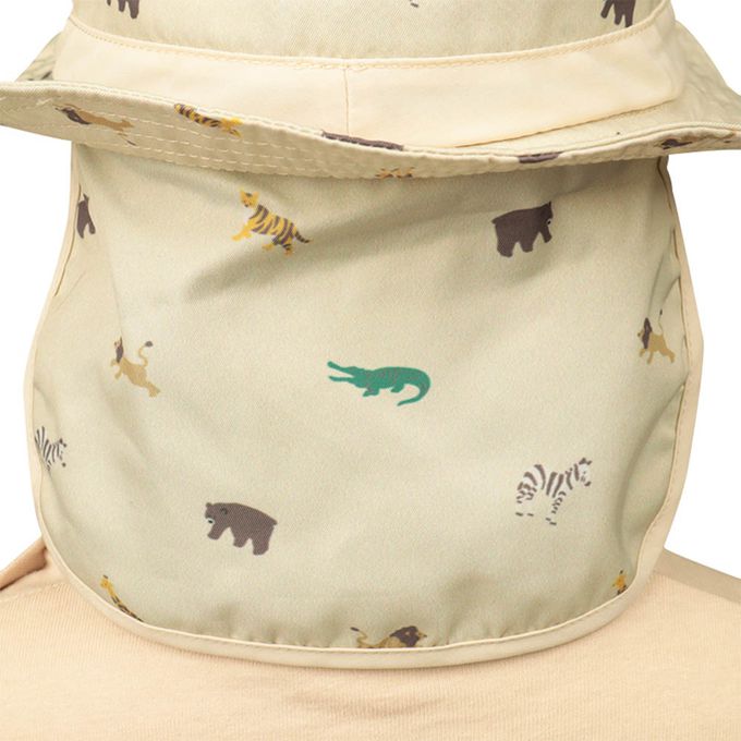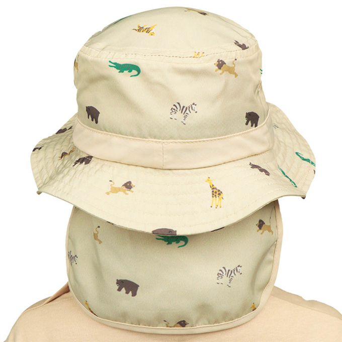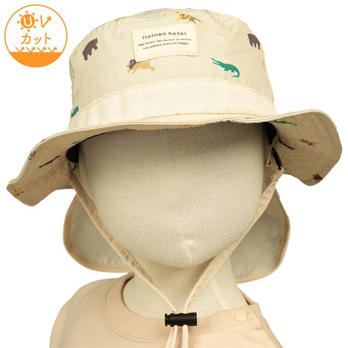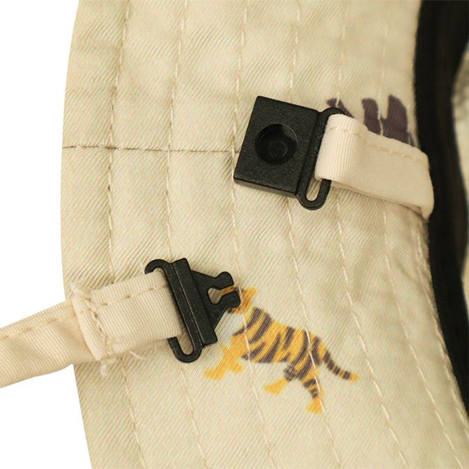 為防止被風等吹落,下巴有固定繩。固定繩的單側用力拉之後,接頭會自動分開。