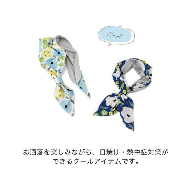 日本現代百貨 - UV CUT抗菌加工涼感領巾(附保冰袋)-花朵-海軍藍
