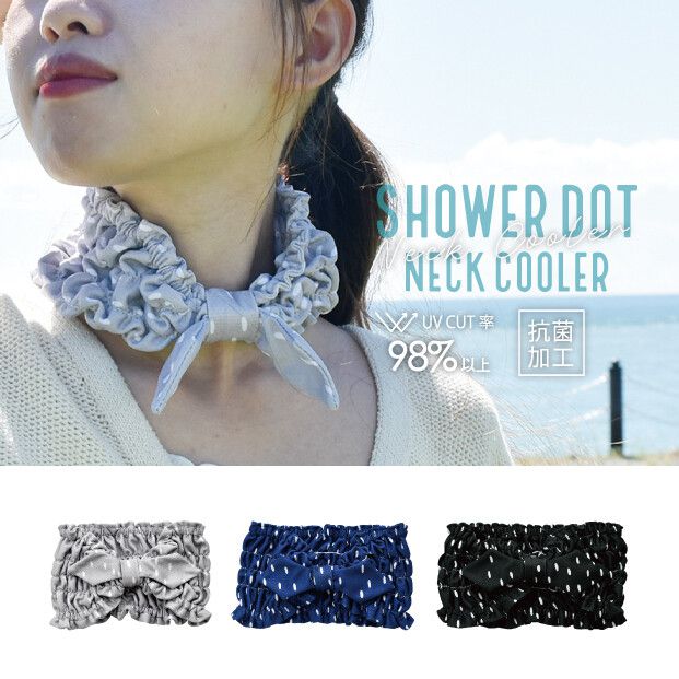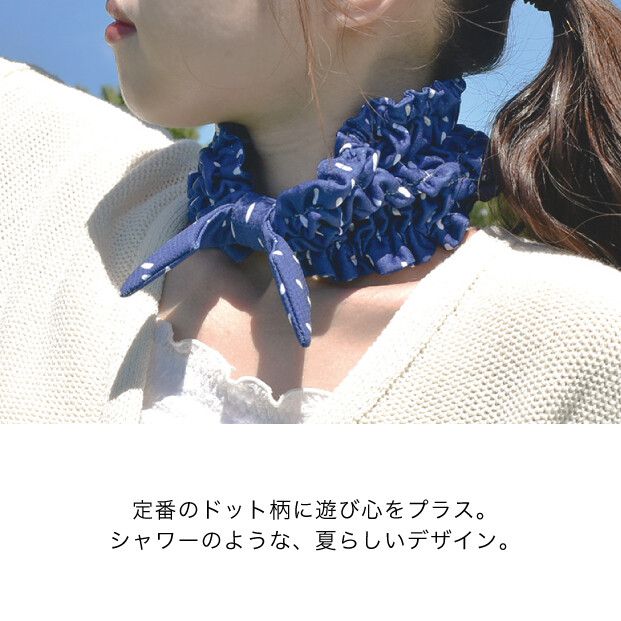 日本現代百貨 - UV CUT抗菌加工皺摺涼感領巾/髮帶-點點-海軍藍