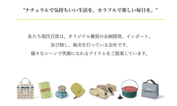 現代百貨是一家從事原創雜貨的企劃開發、進口、批發及販售的公司。我們提供能在各種生活場景中帶來笑容的商品。