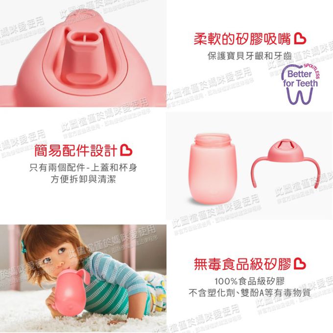 柔軟的矽膠吸嘴保護寶貝牙齦和牙齒