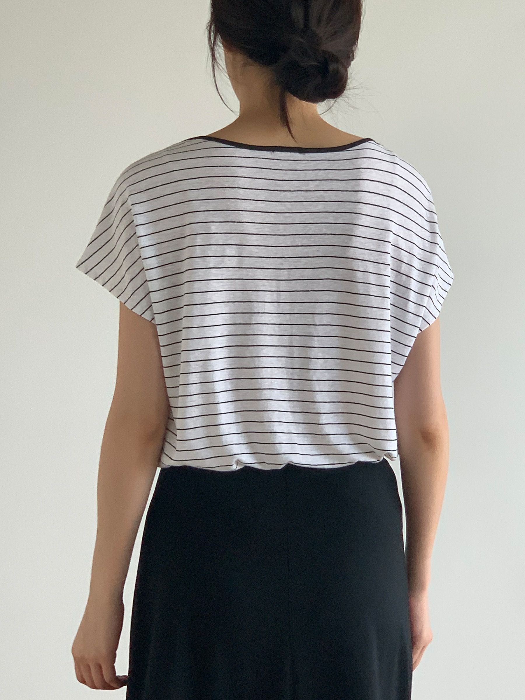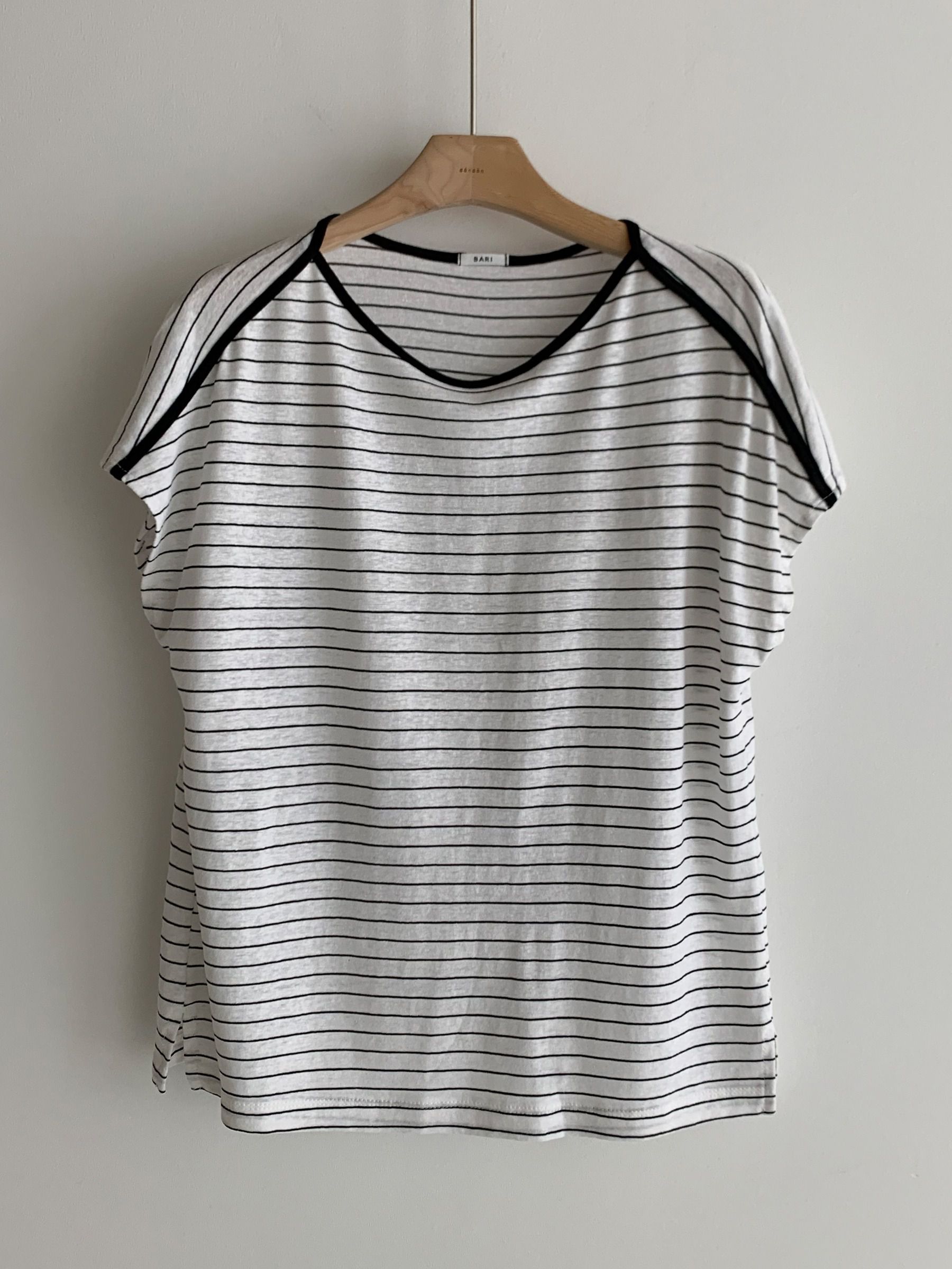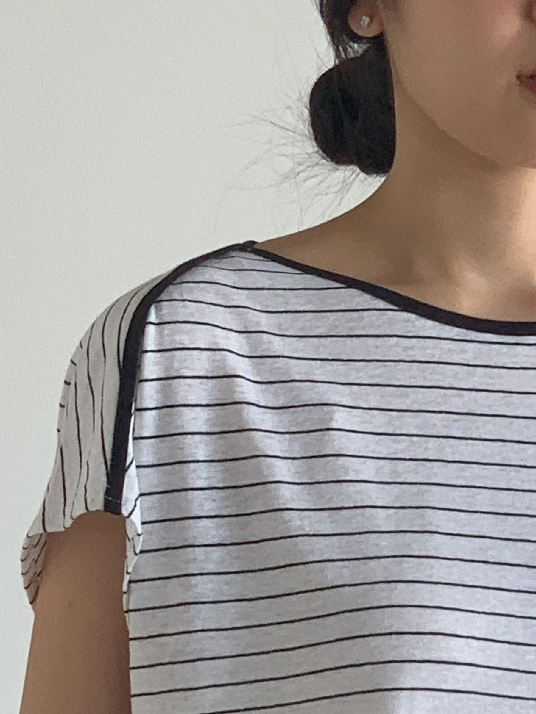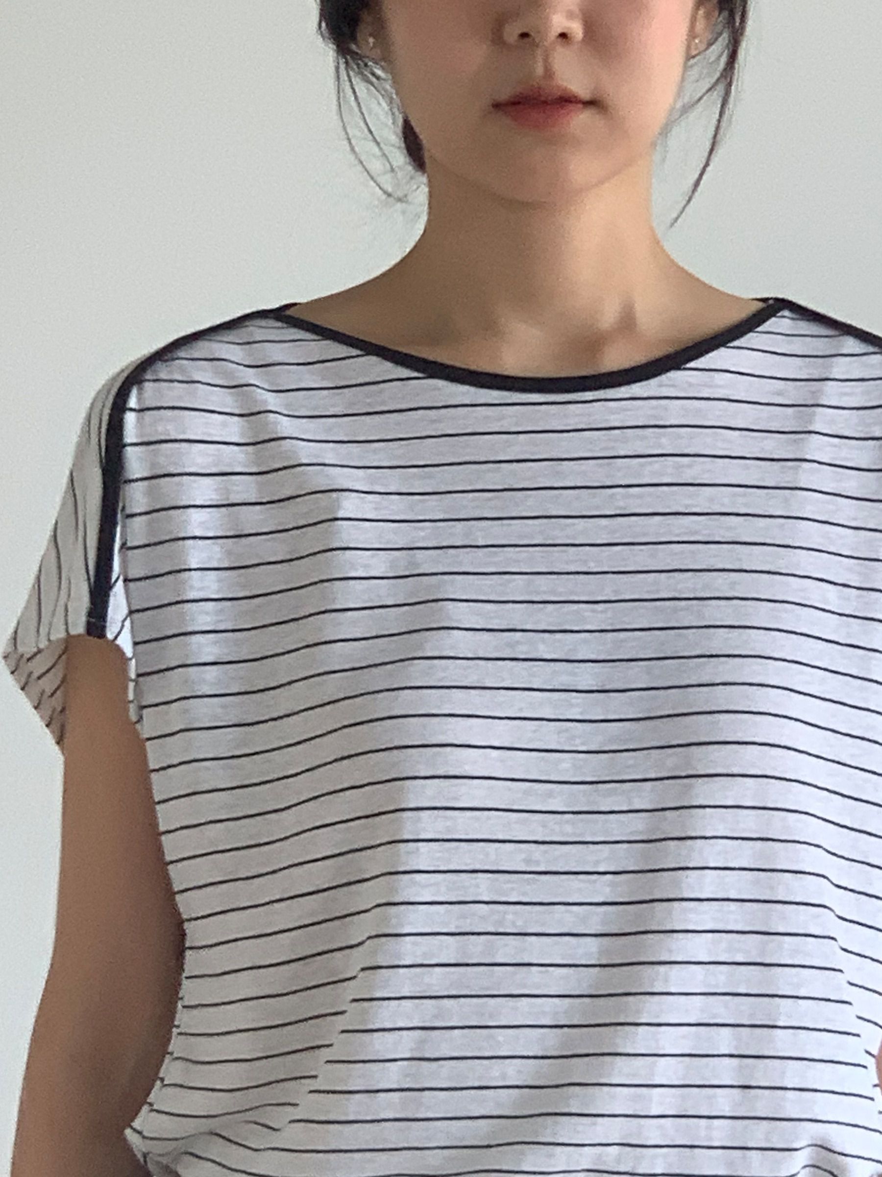 韓國女裝連線 - 輕薄修飾蓋袖條紋上衣-白 (FREE)