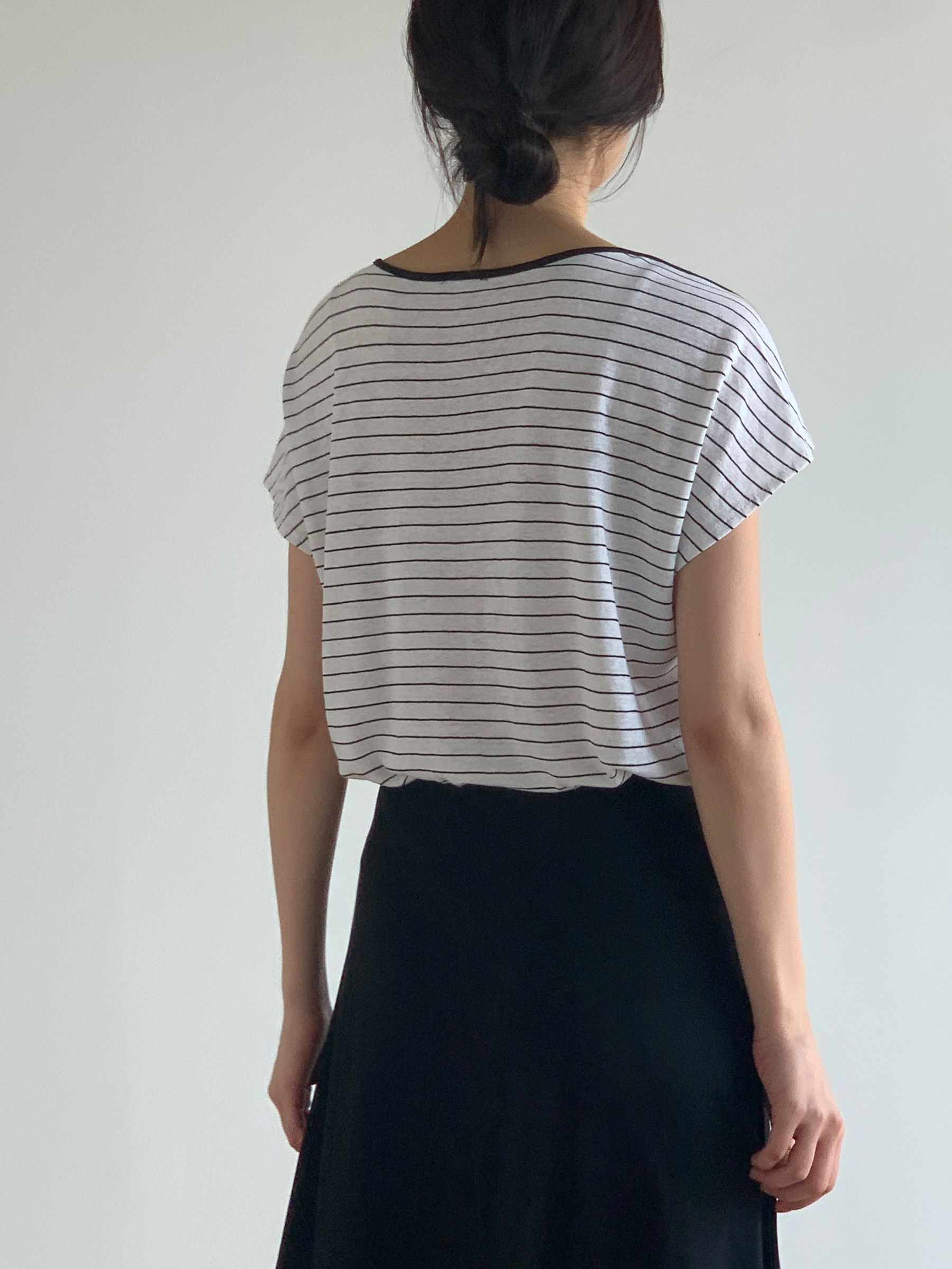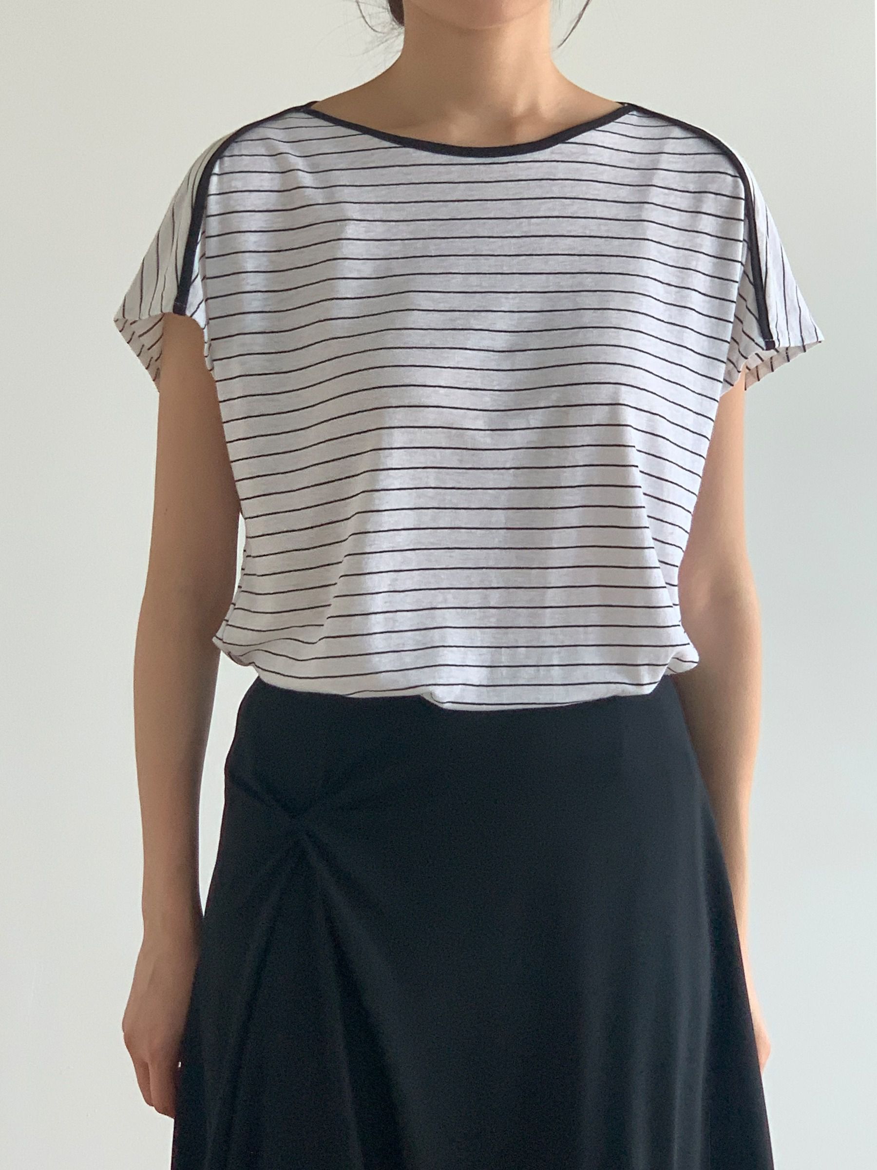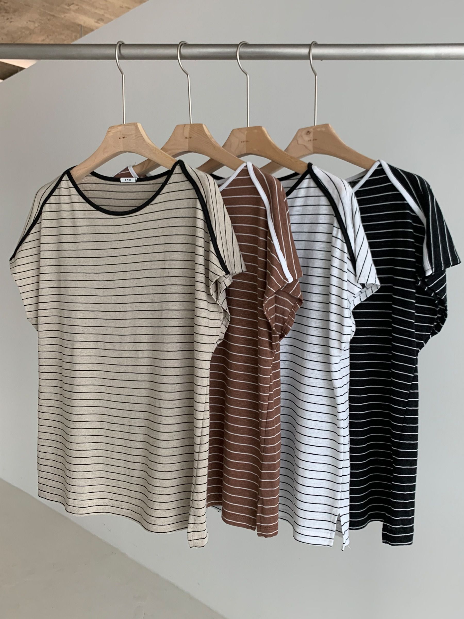 韓國女裝連線 - 輕薄修飾蓋袖條紋上衣-白 (FREE)