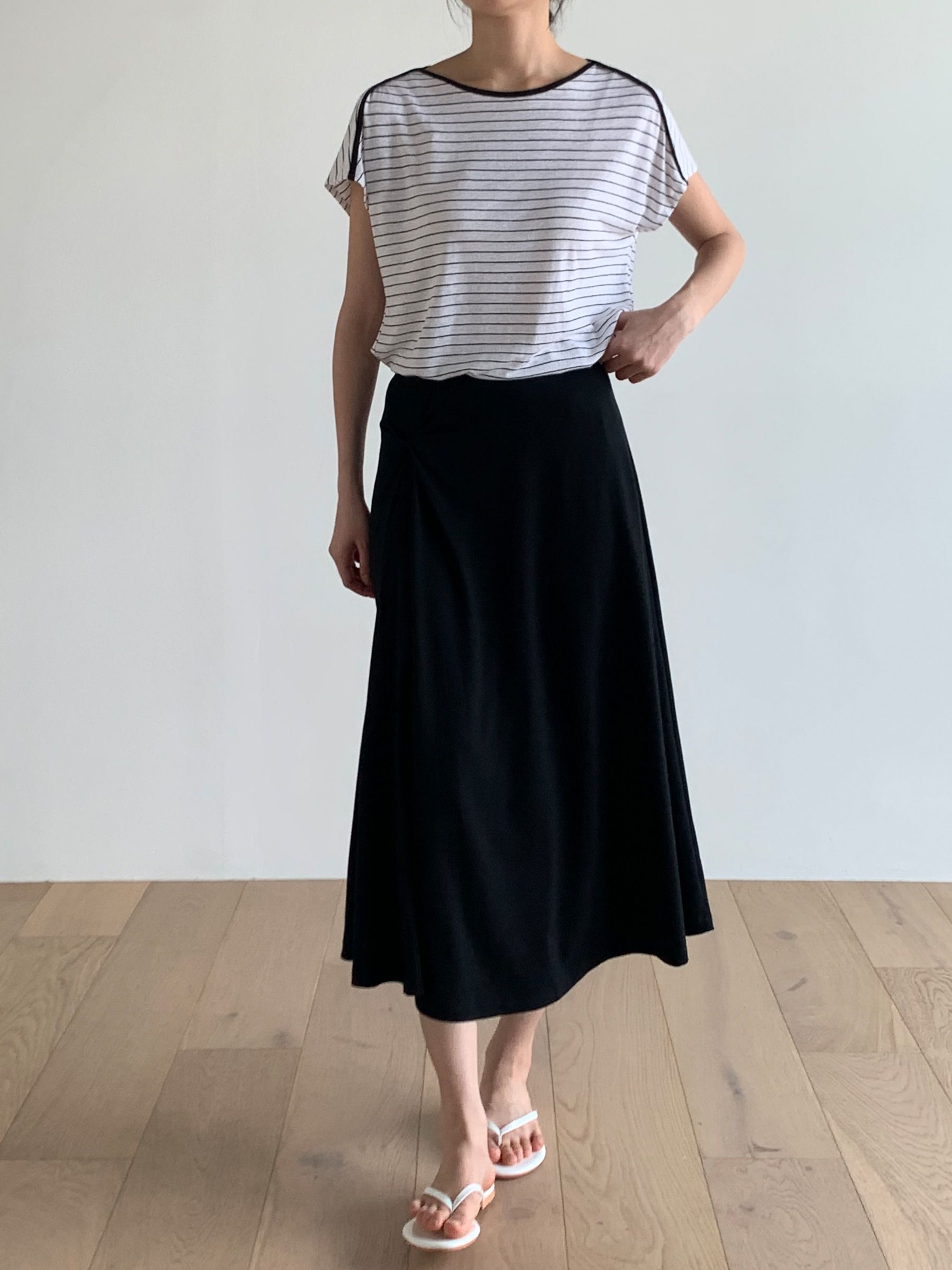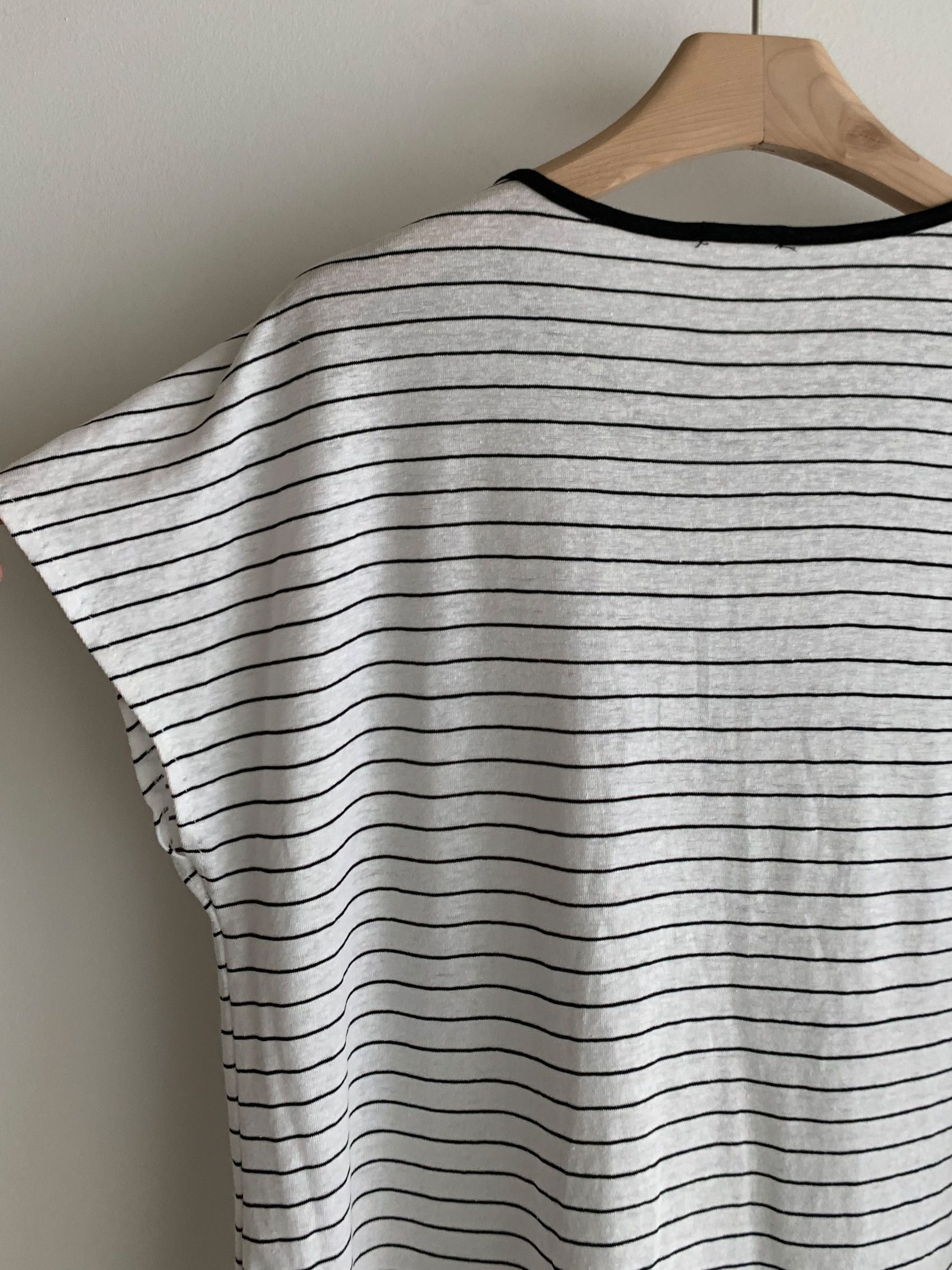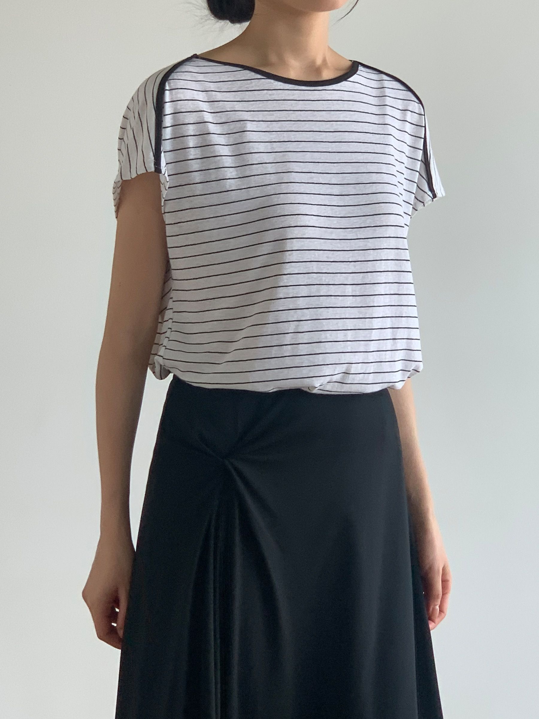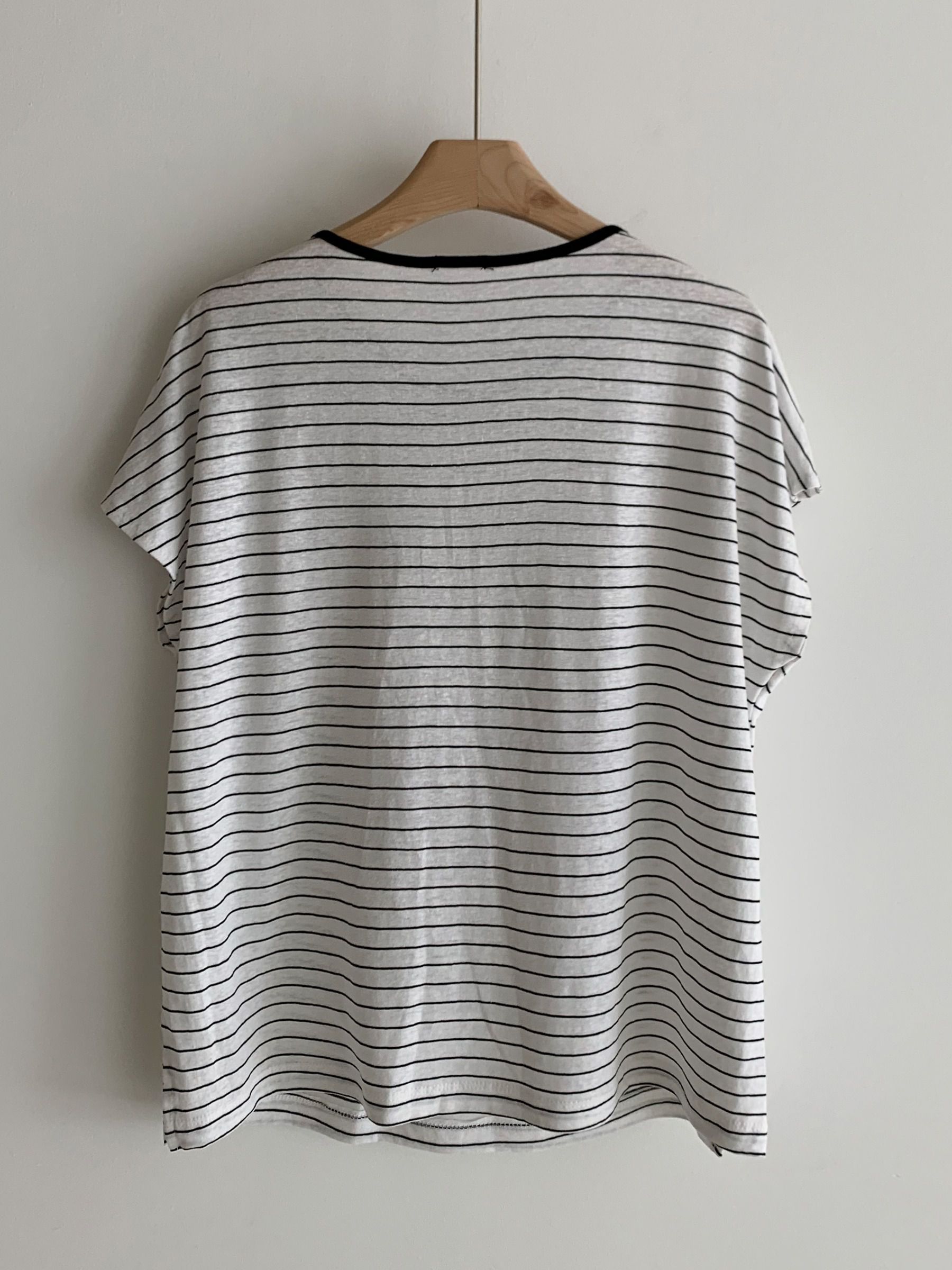 韓國女裝連線 - 輕薄修飾蓋袖條紋上衣-白 (FREE)