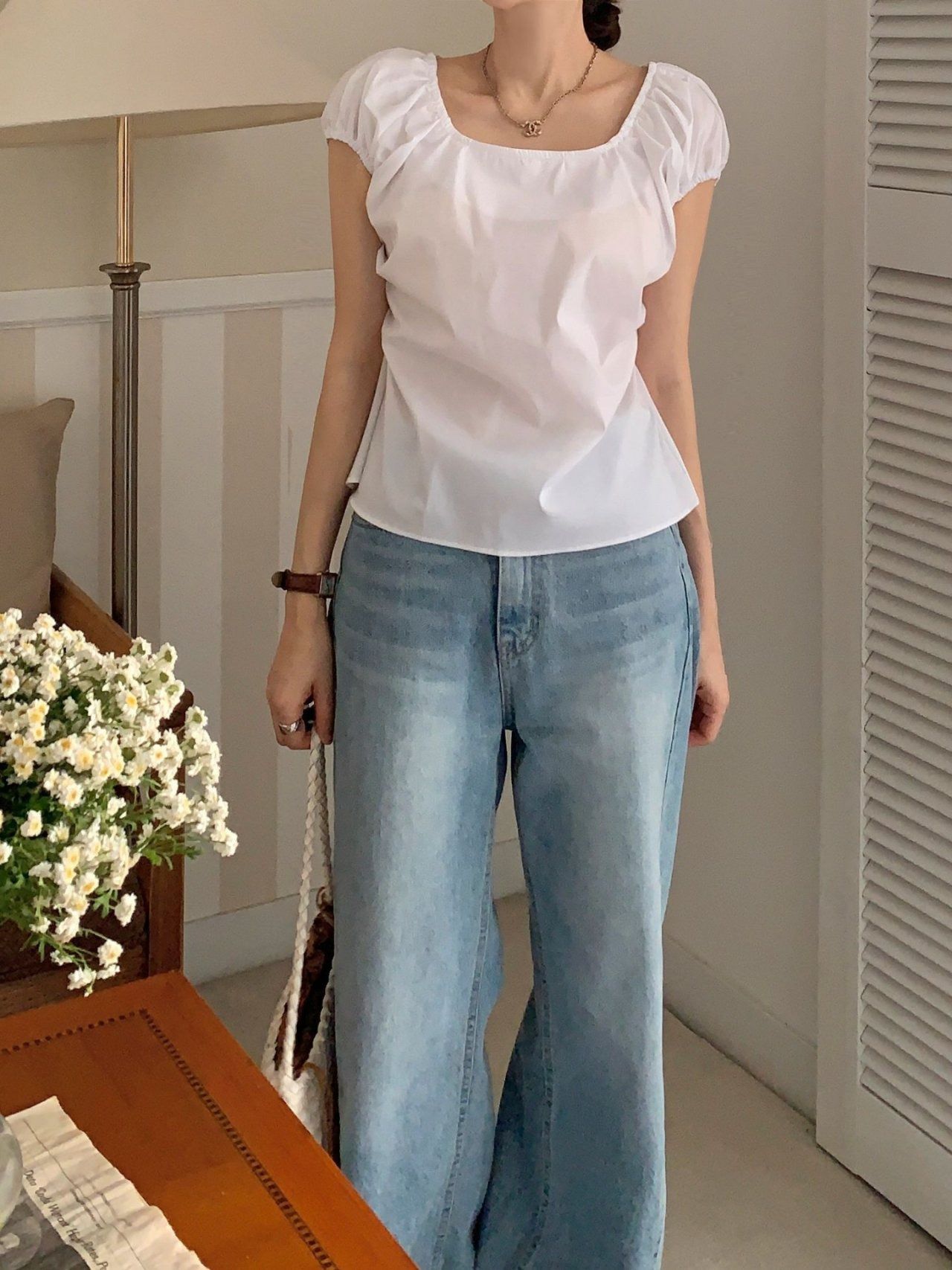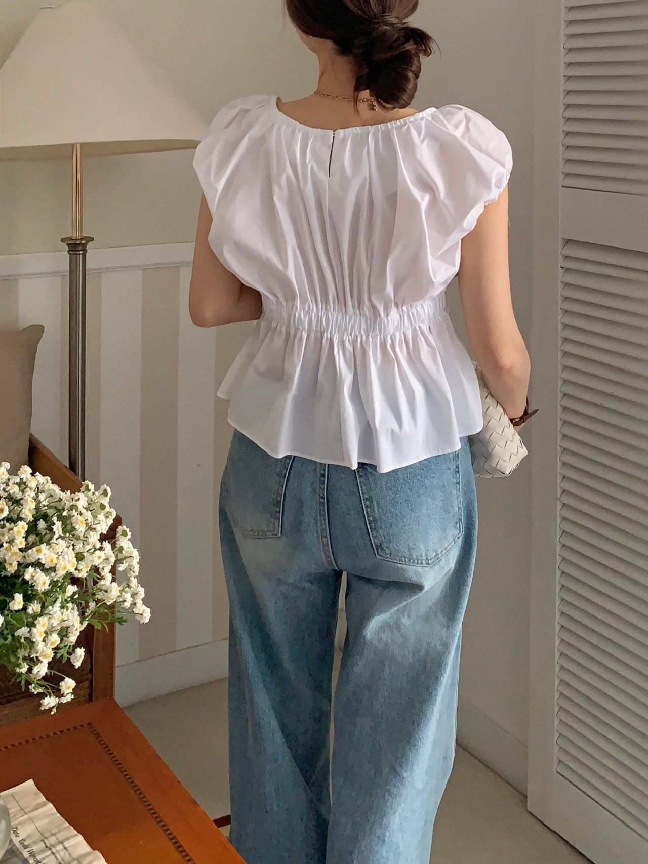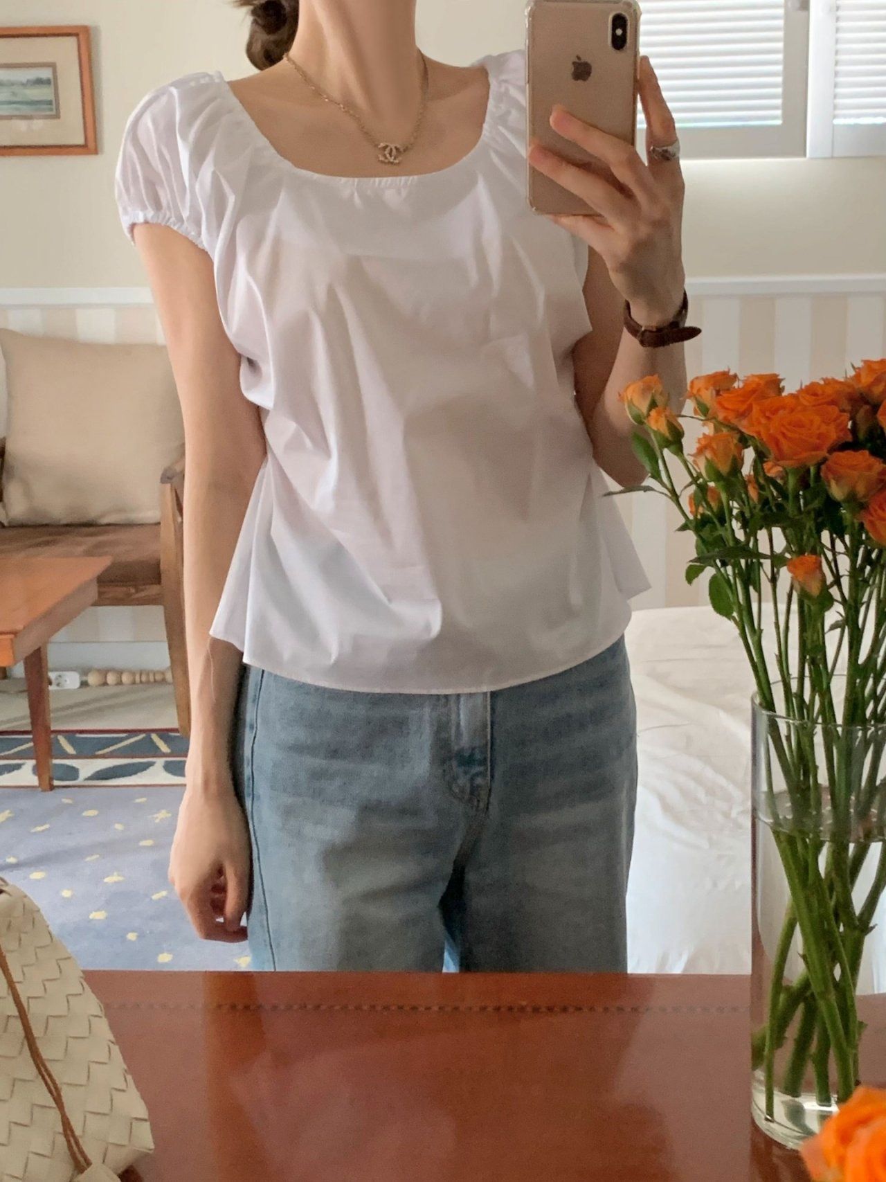 • 品名:顯瘦後背抓褶造型包袖襯衫