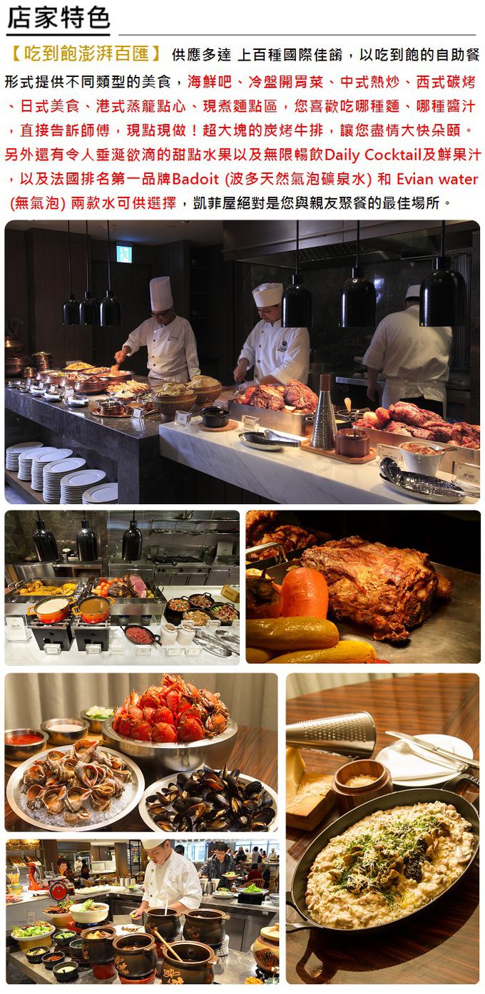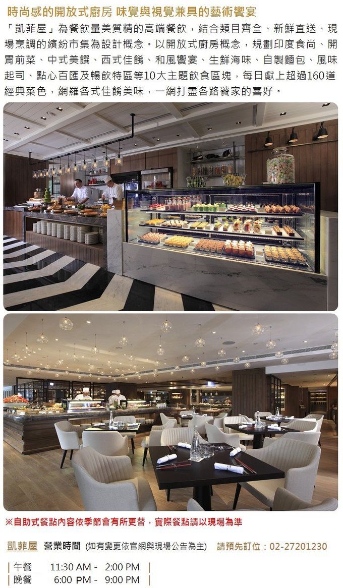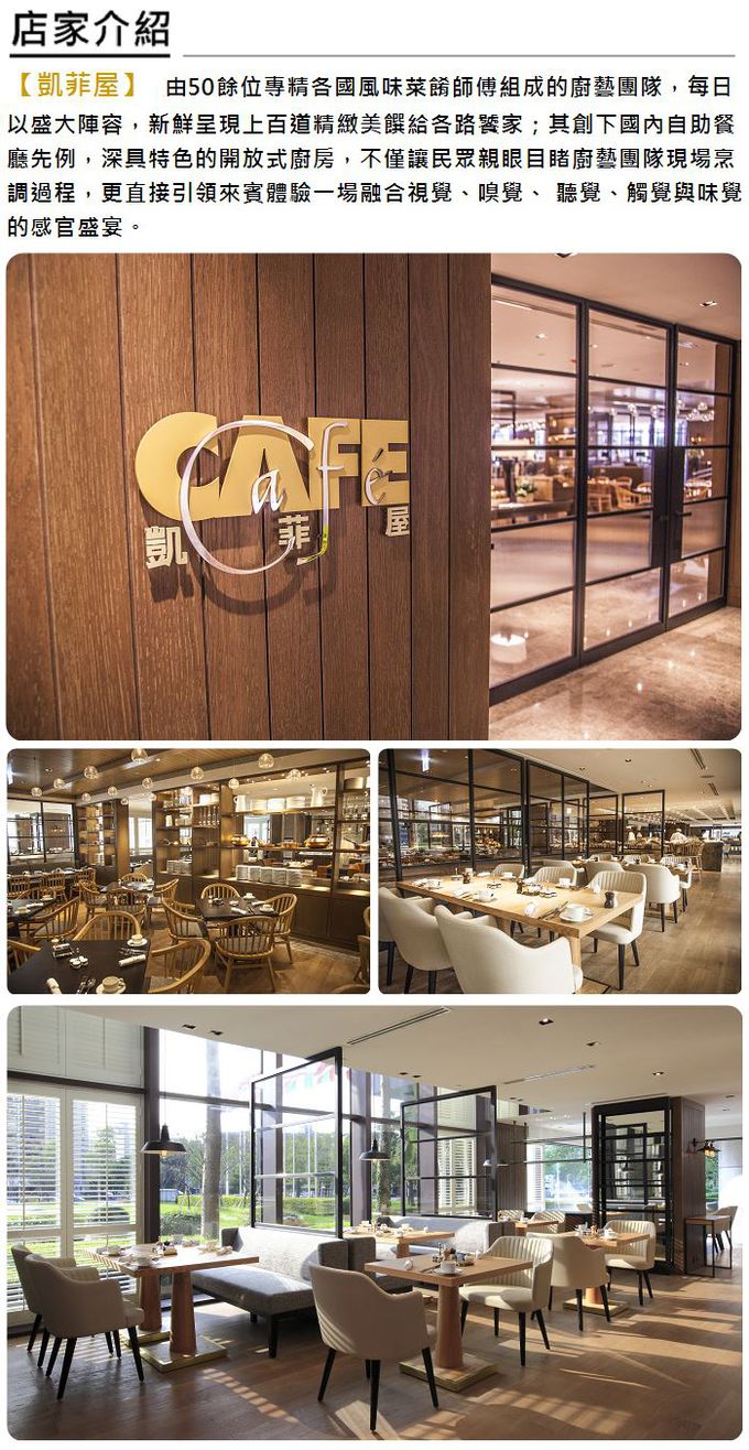 優惠內容:持本禮券可享一樓凱菲屋平日週一至週五午間自助餐壹客