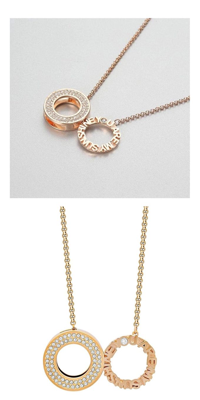ADMIRATION圓環鑲鑽字母項鍊 (玫瑰金)