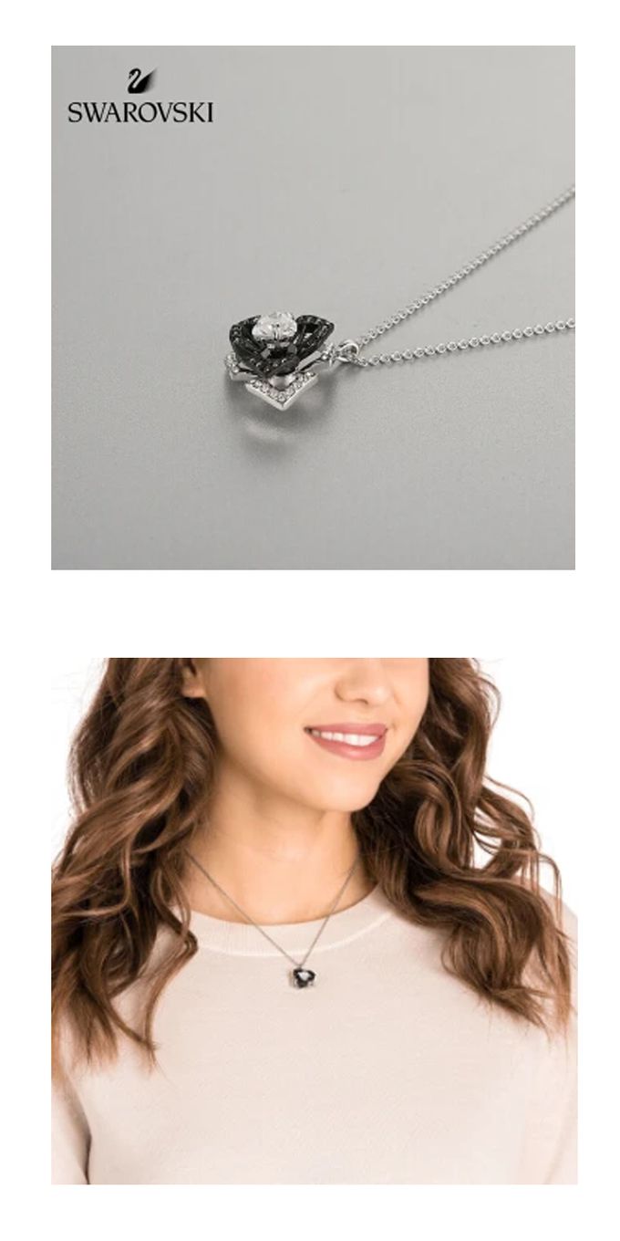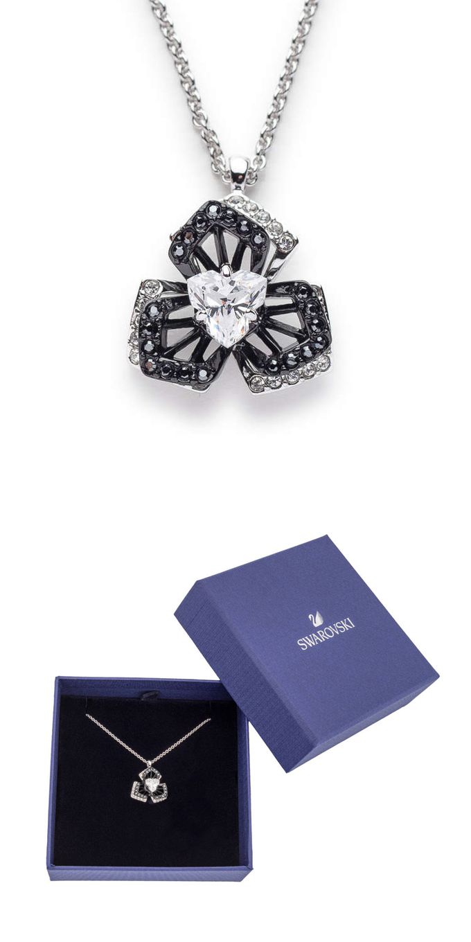品名:銀黑鑲鑽三瓣花朵墜鍊