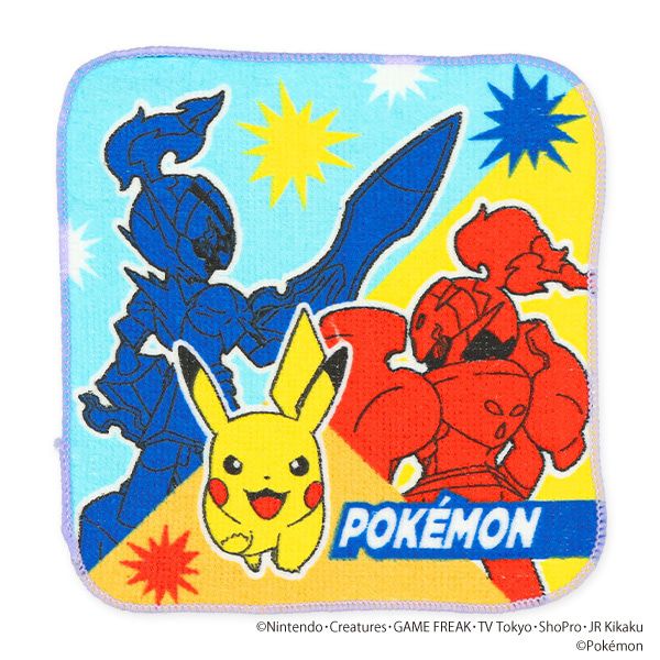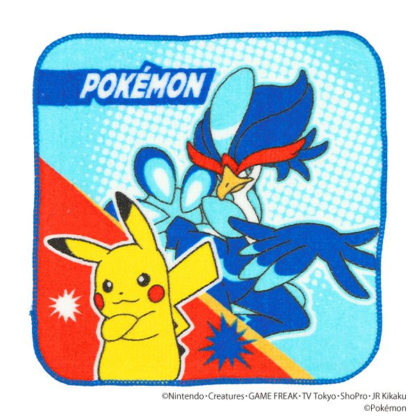 日本西松屋 - 純棉上學擦手巾/手帕(5入組)-卡通人物寶可夢-水藍/紅系 (16×16cm)
