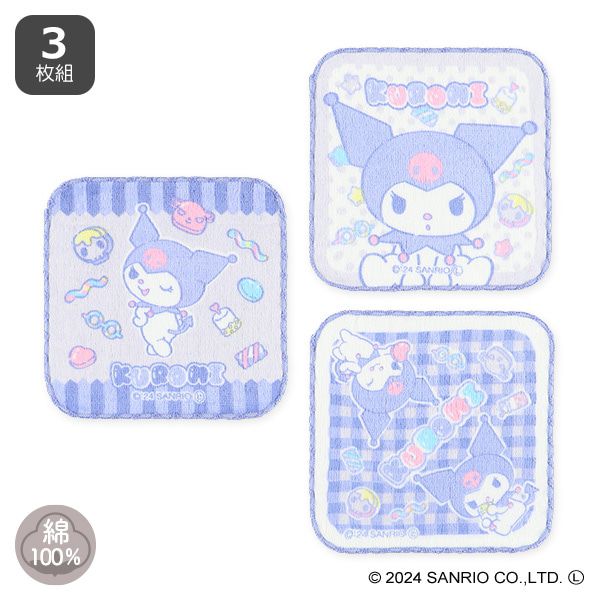日本西松屋 - 純棉上學擦手巾/手帕(3入組)-卡通人物酷洛米-紫色系 (16×16cm)