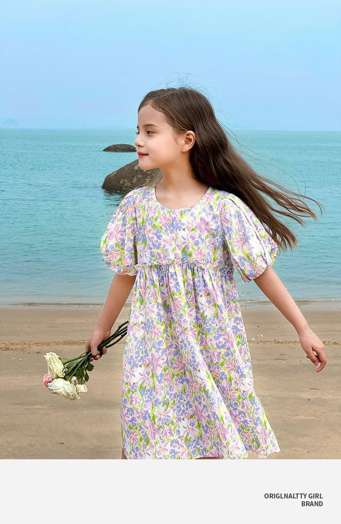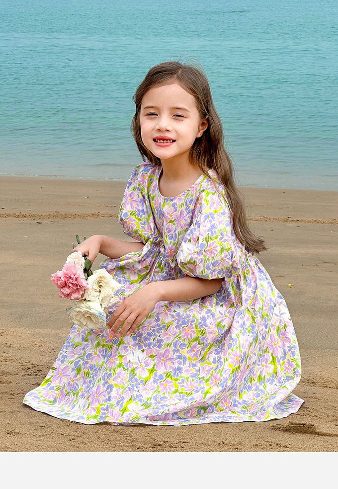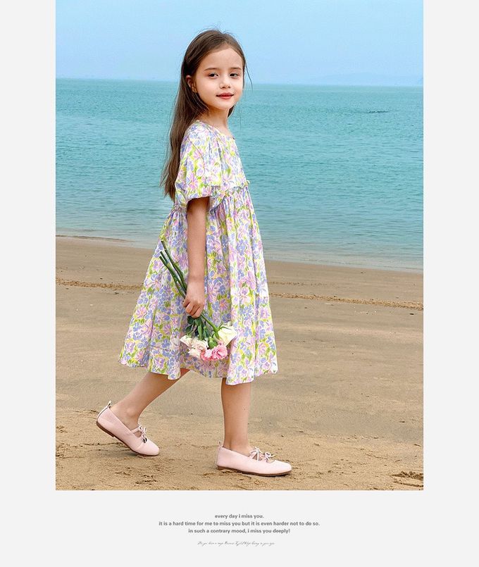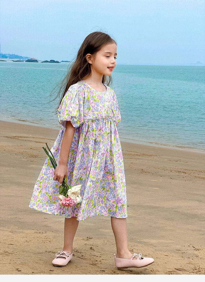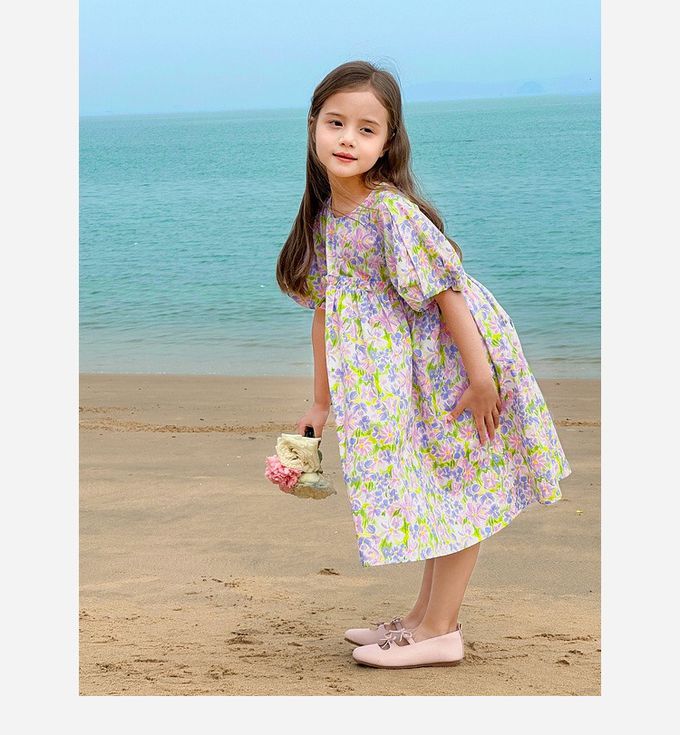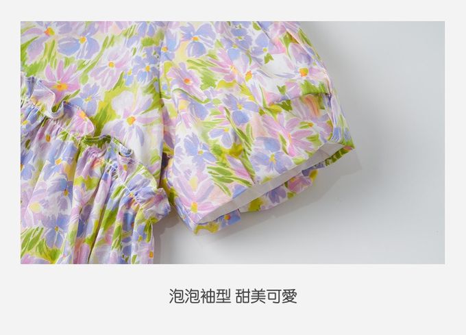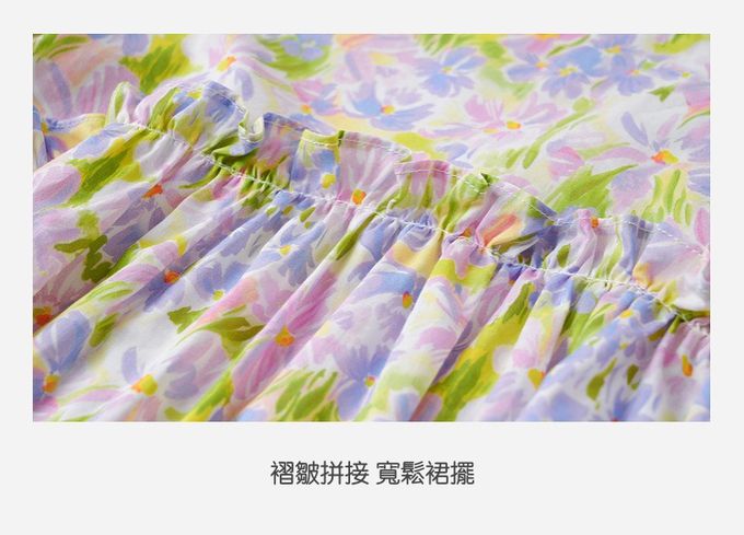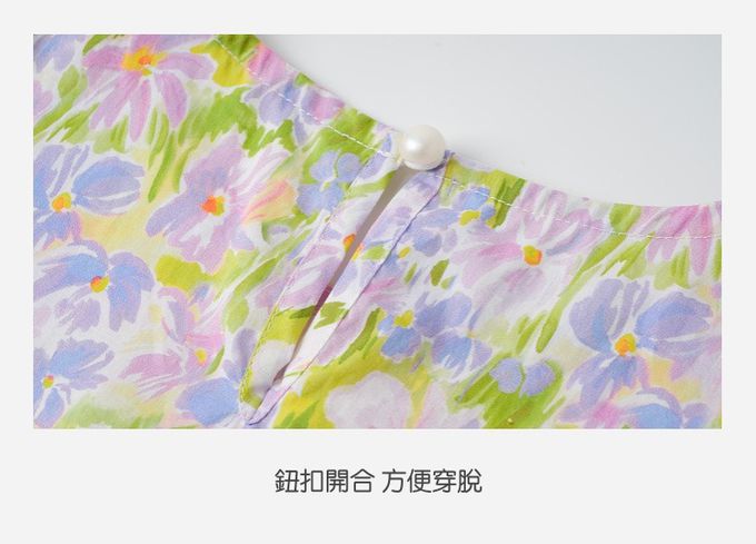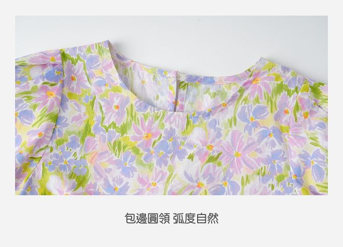純棉甜美小澎袖洋裝-滿版印花-粉紫色