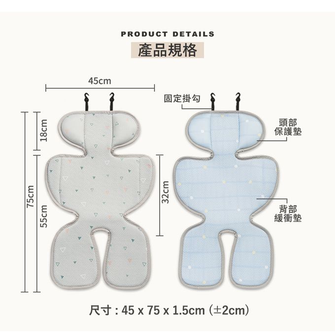 加厚5公分頭枕設計,降低寶貝頭部晃動