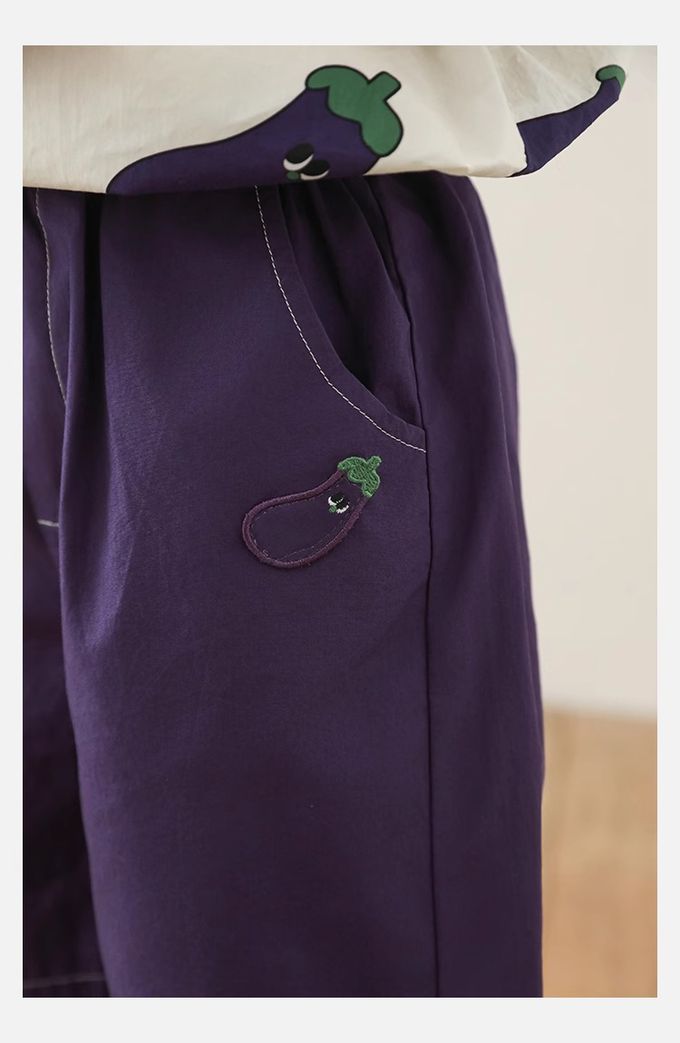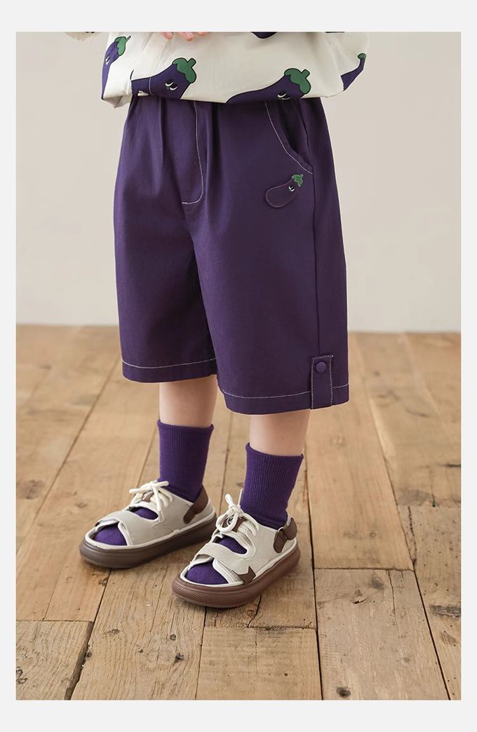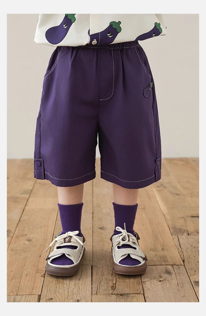 純棉腰鬆緊休閒短褲-茄子-紫色
