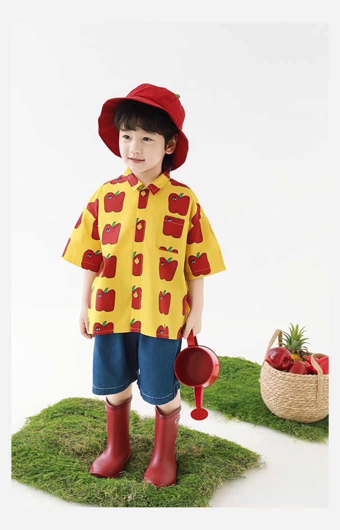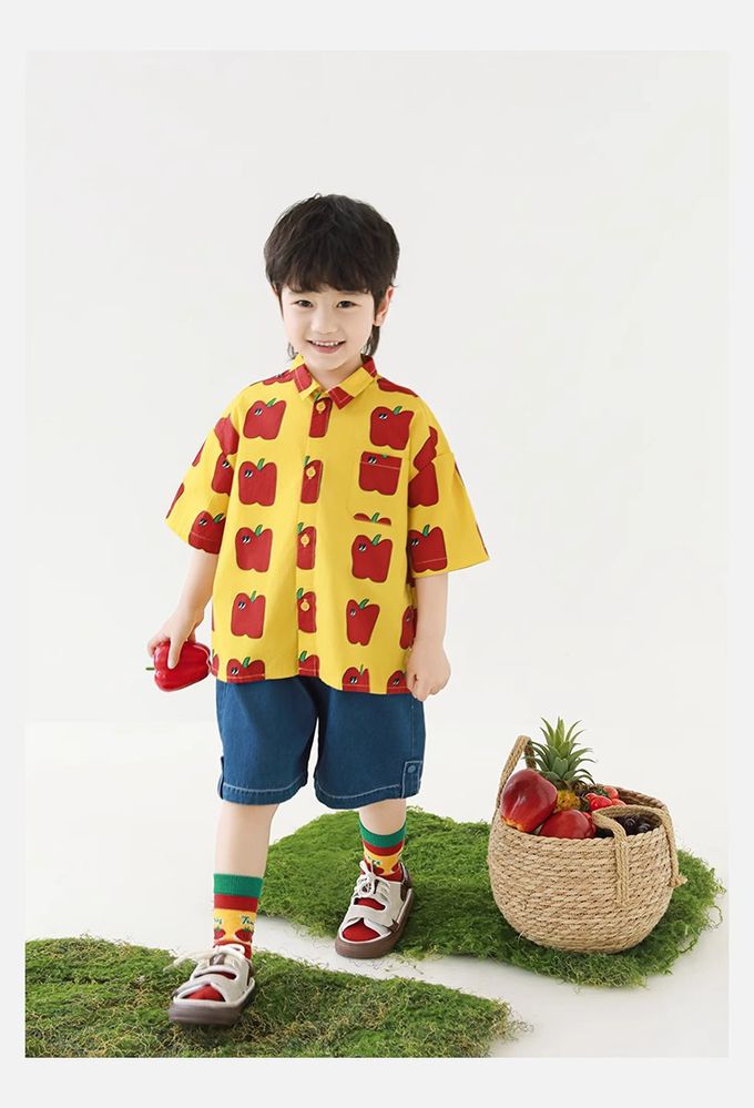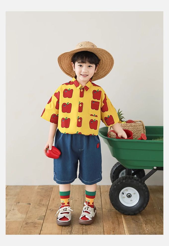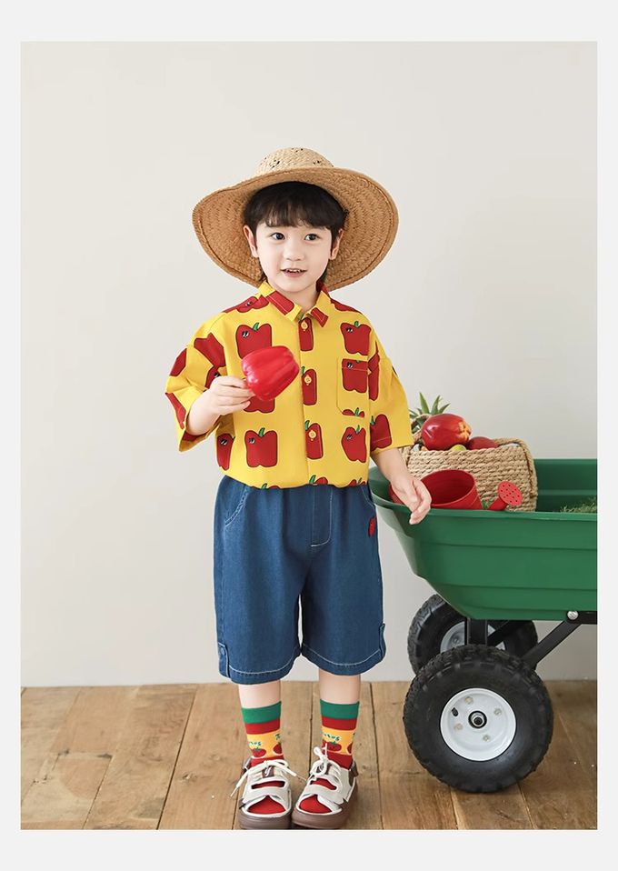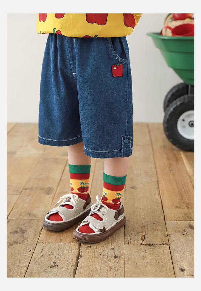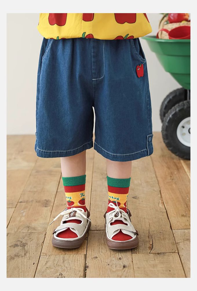 腰鬆緊休閒牛仔短褲-紅椒-藍色