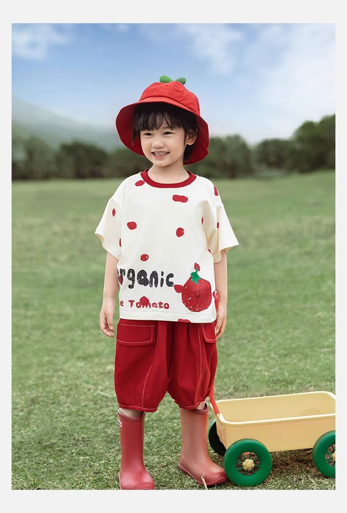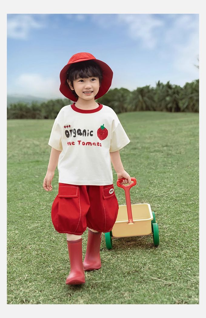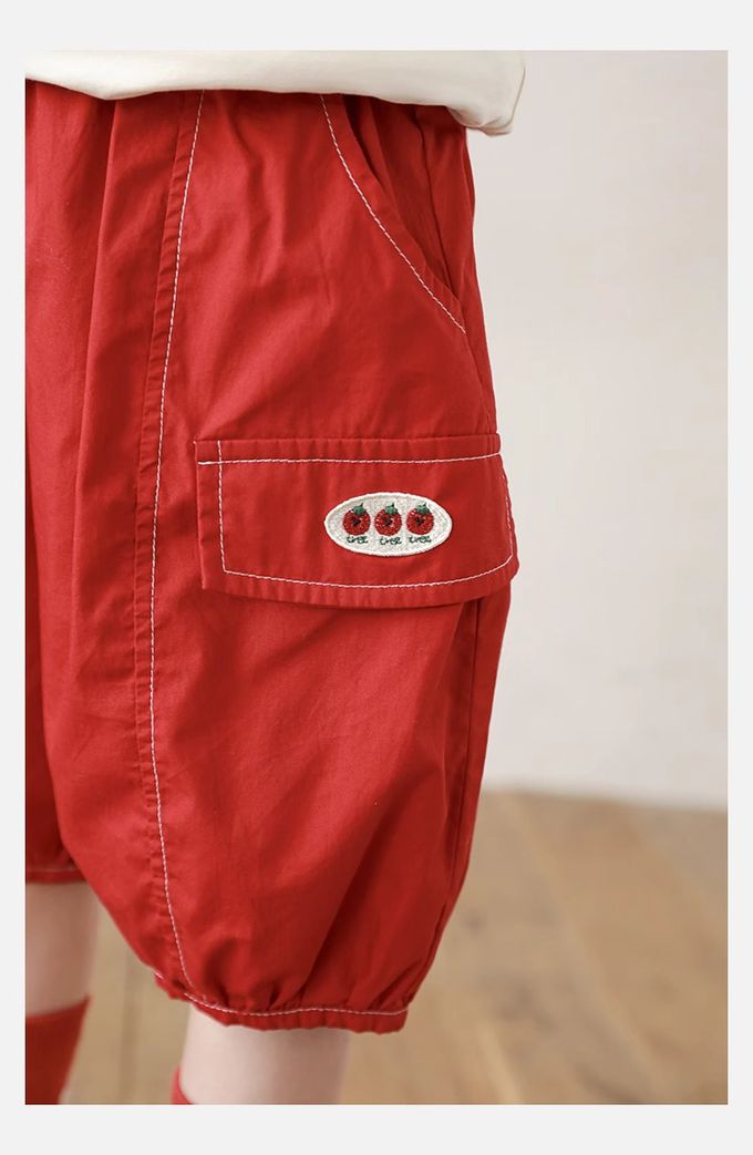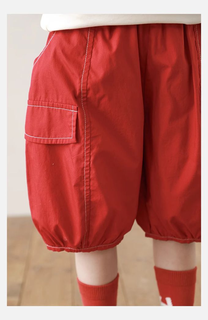 純棉腰鬆緊休閒短褲-番茄-紅色