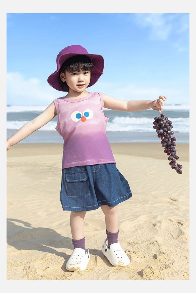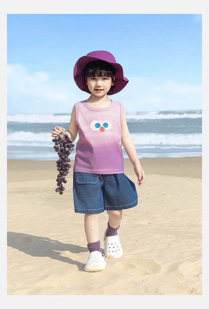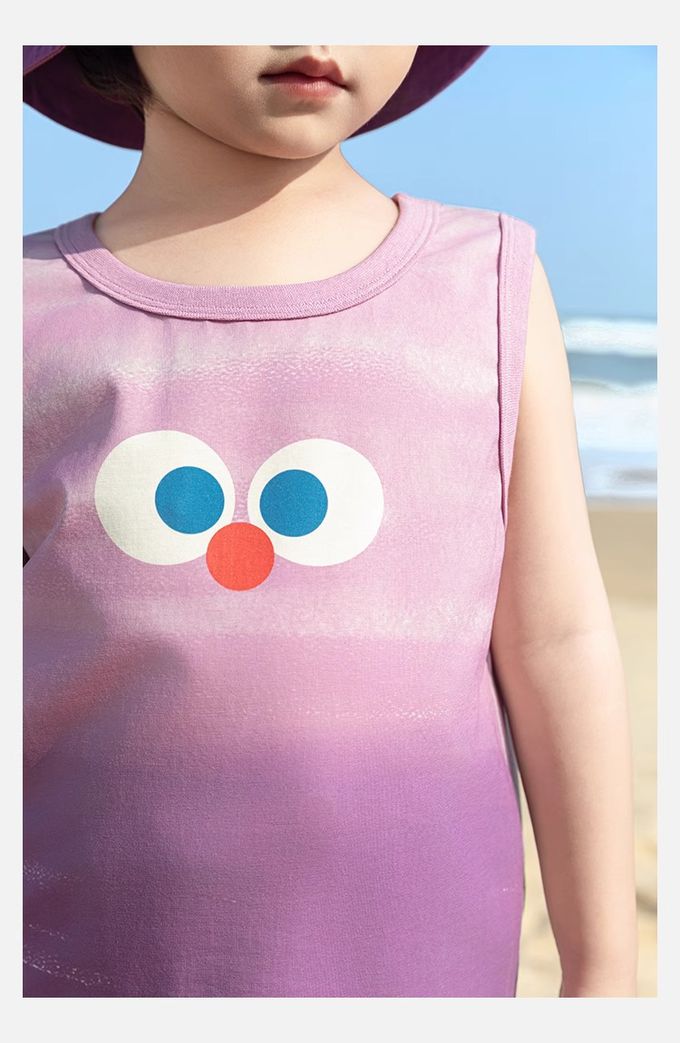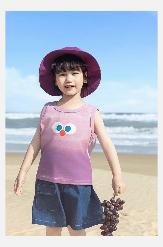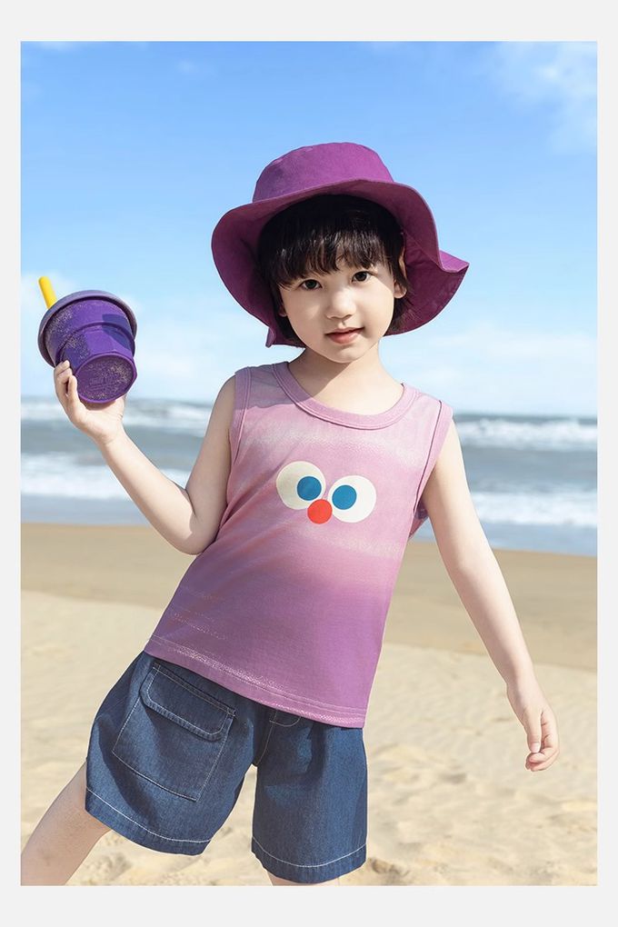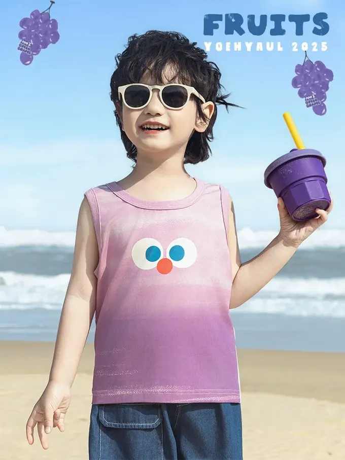棉質圓領休閒無袖上衣/背心-葡萄-漸層紫