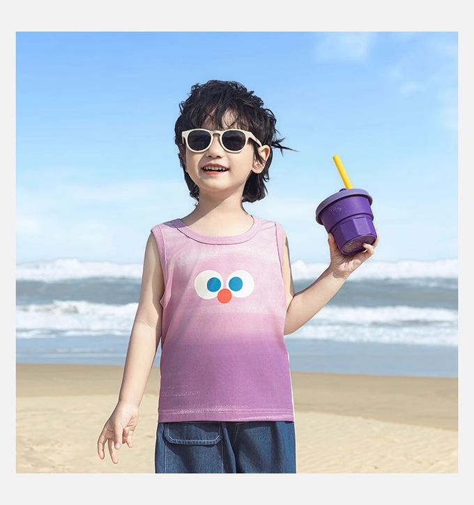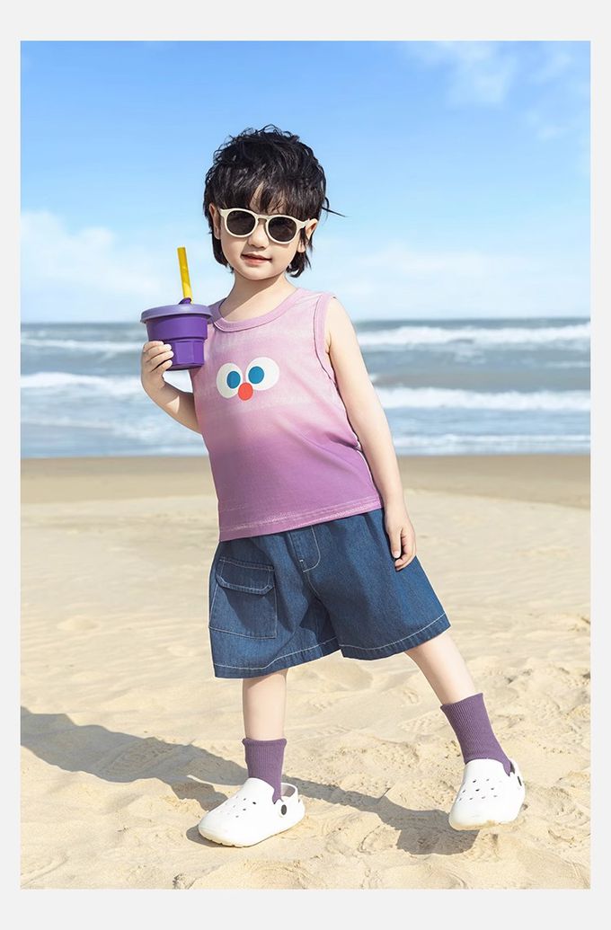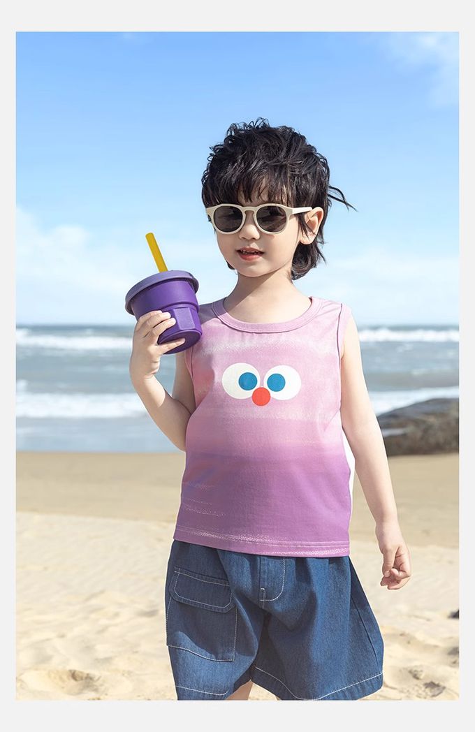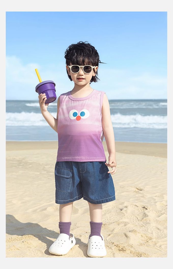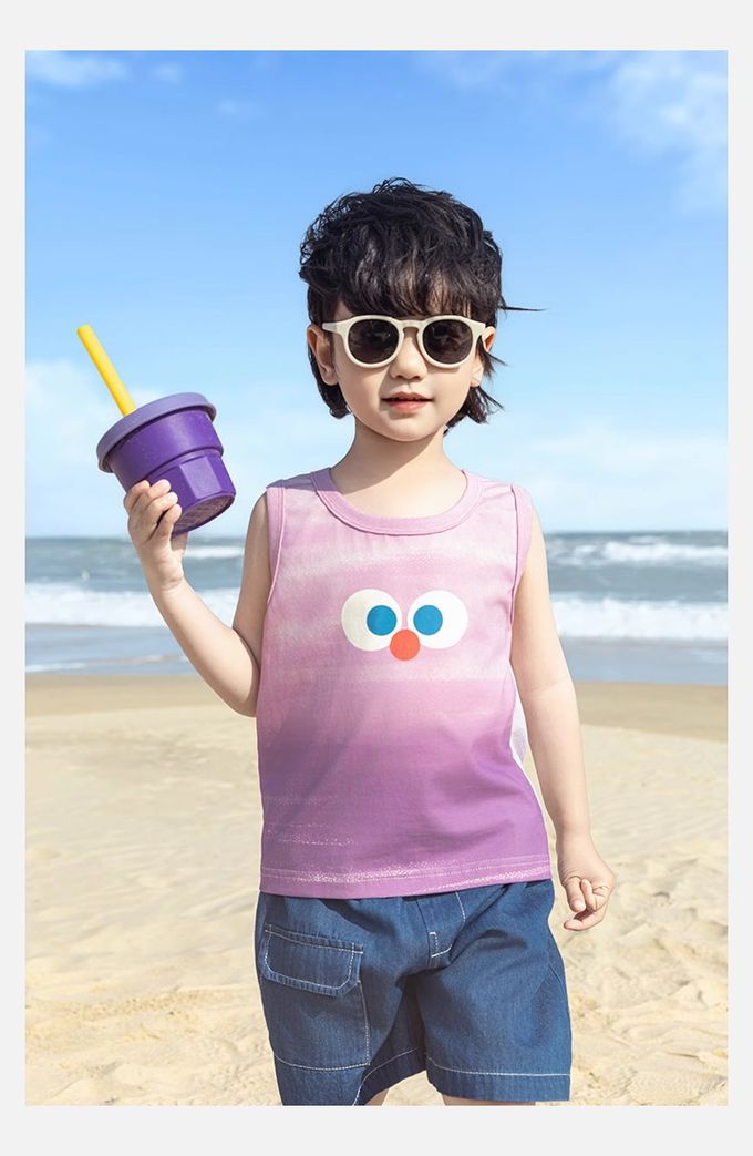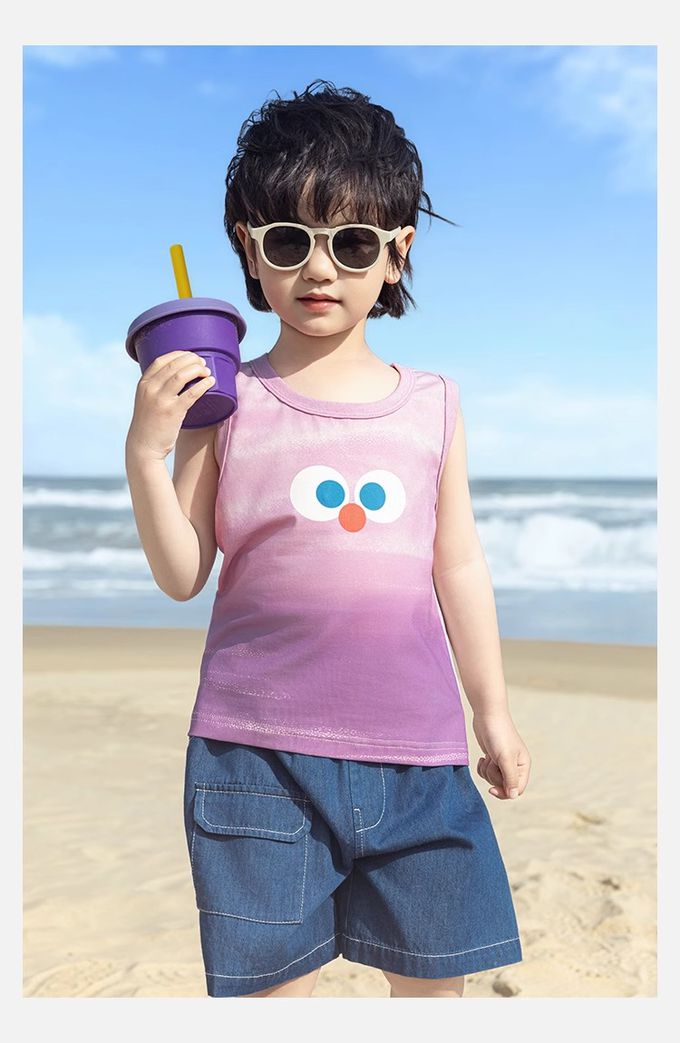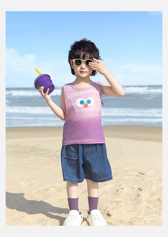 棉質圓領休閒無袖上衣/背心-葡萄-漸層紫