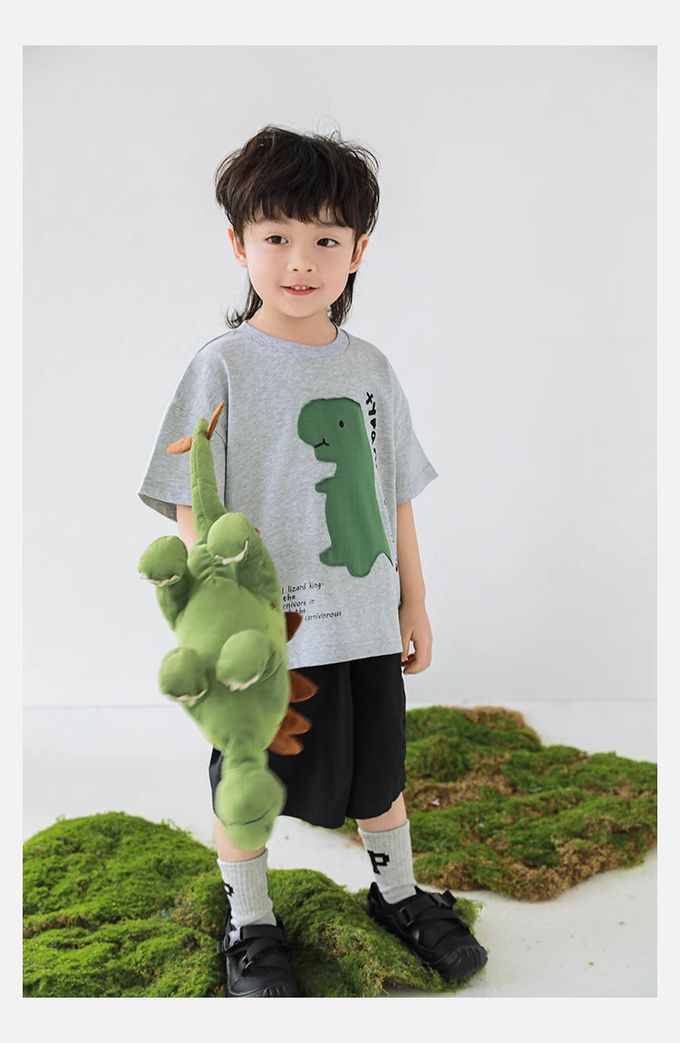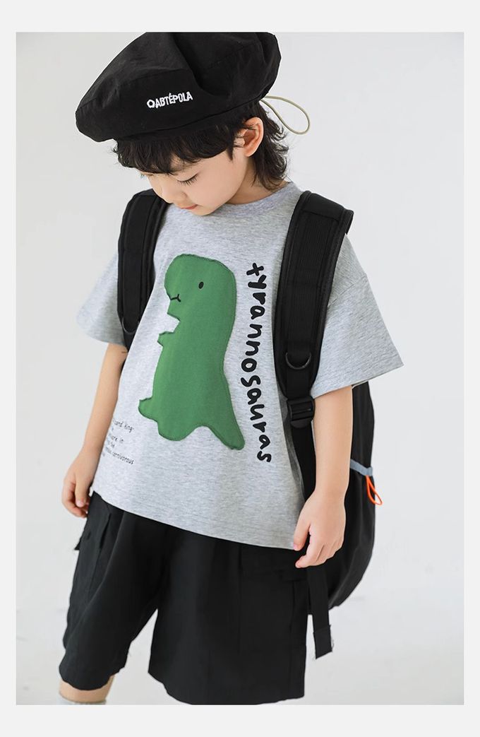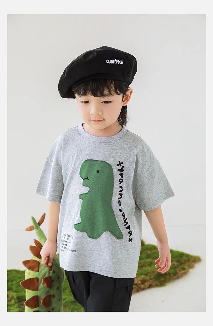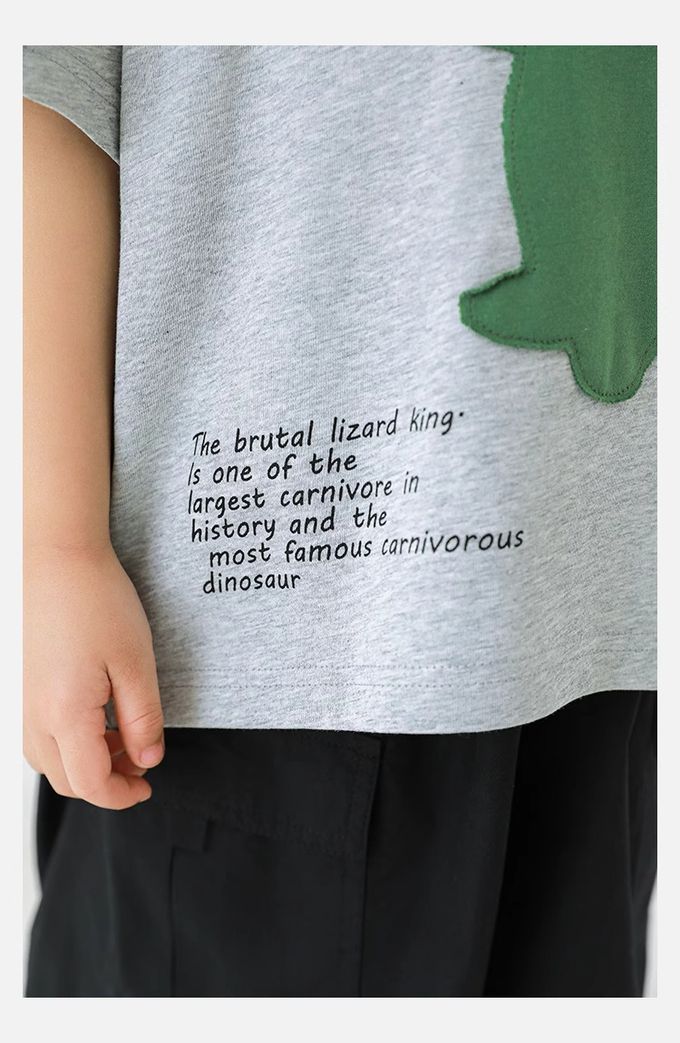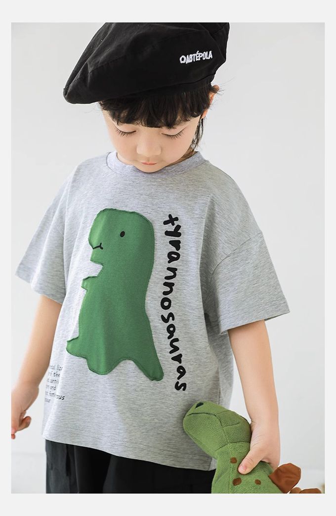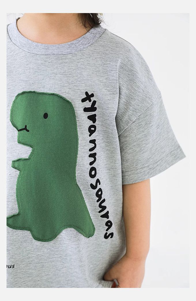 純棉圓領休閒短袖上衣-恐龍貼布繡-灰色