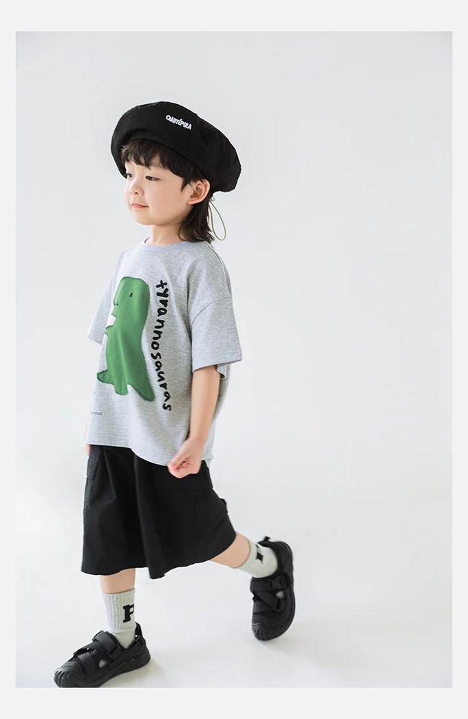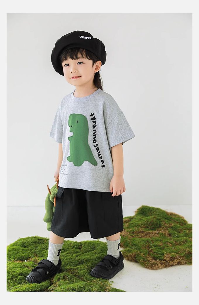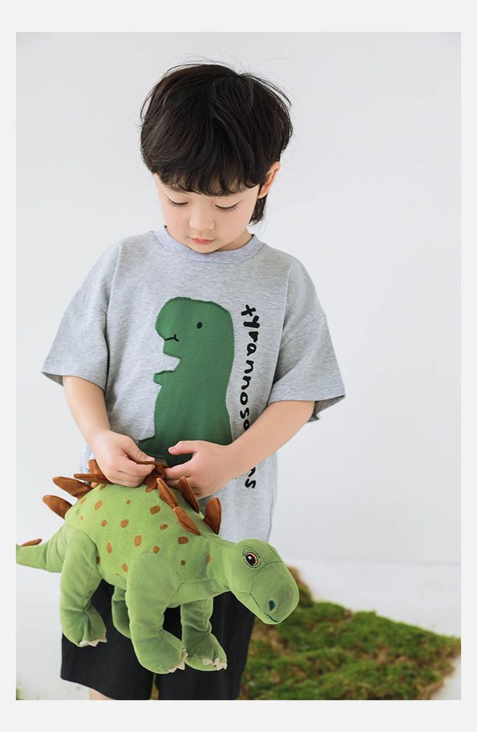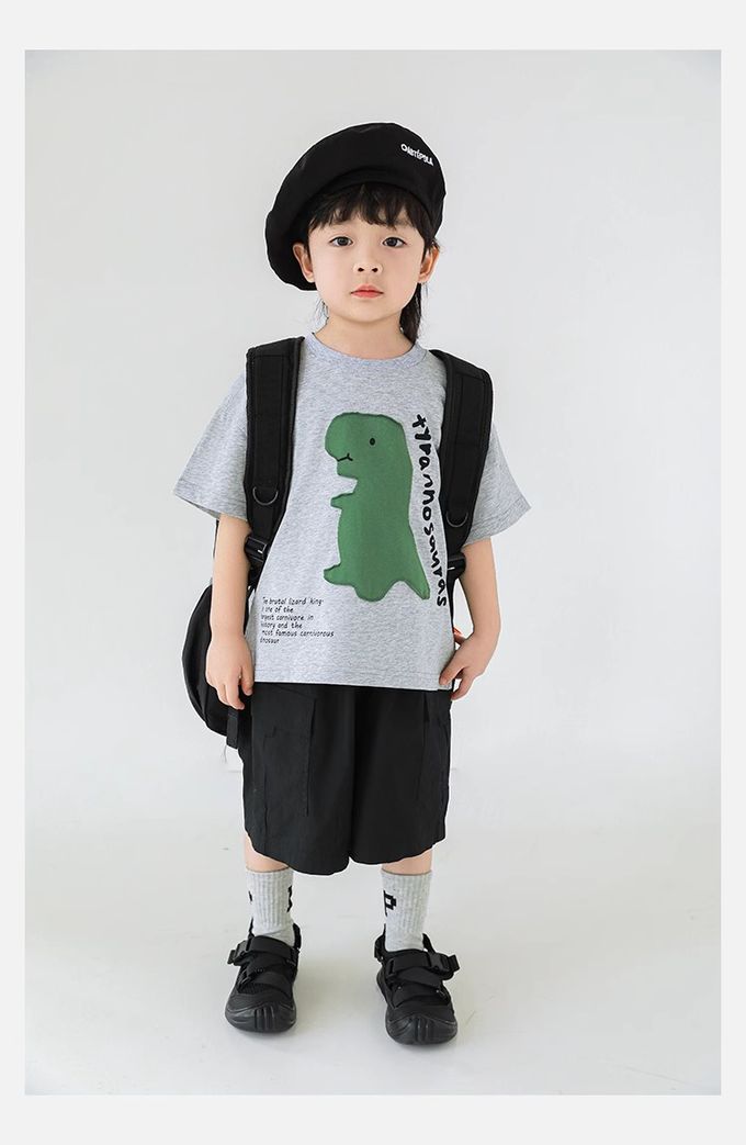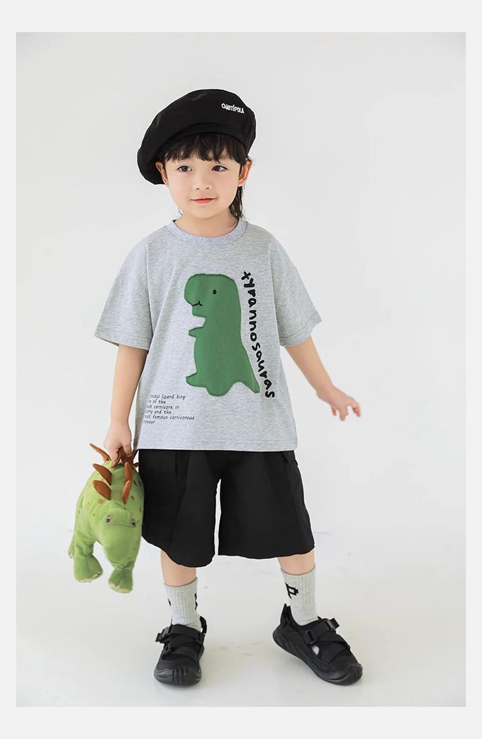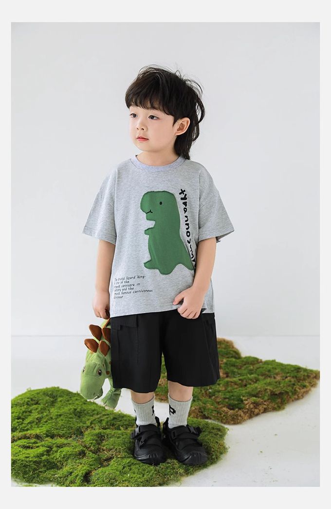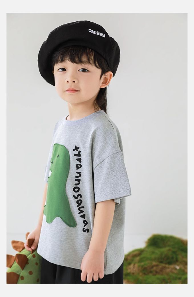 純棉圓領休閒短袖上衣-恐龍貼布繡-灰色