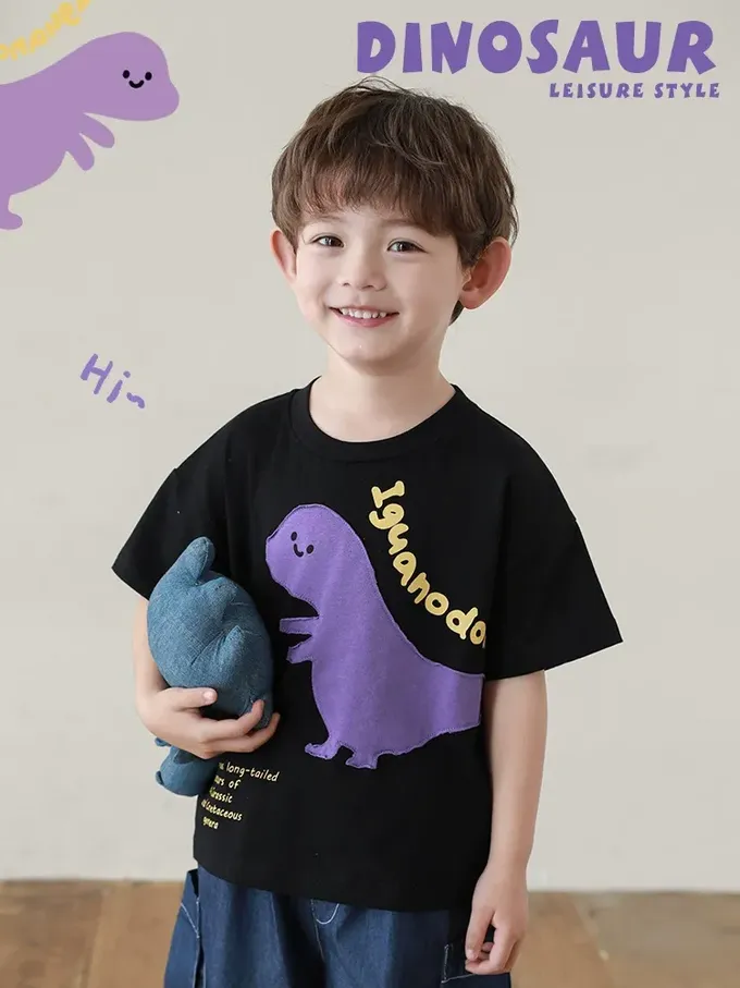 童趣貼布恐龍+字母印花,可愛又吸睛