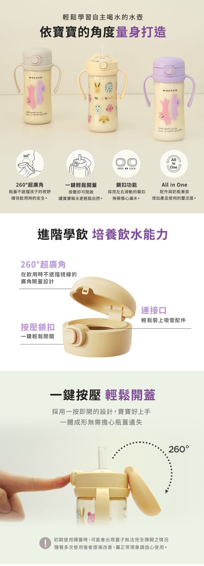 寶寶喝水不再被蓋子打擾,飲水時的視野更加安全。