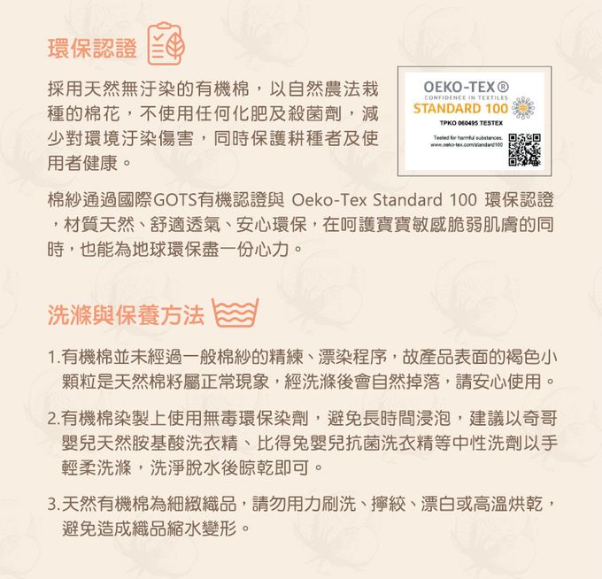 台灣製造,天然無汙染有機棉