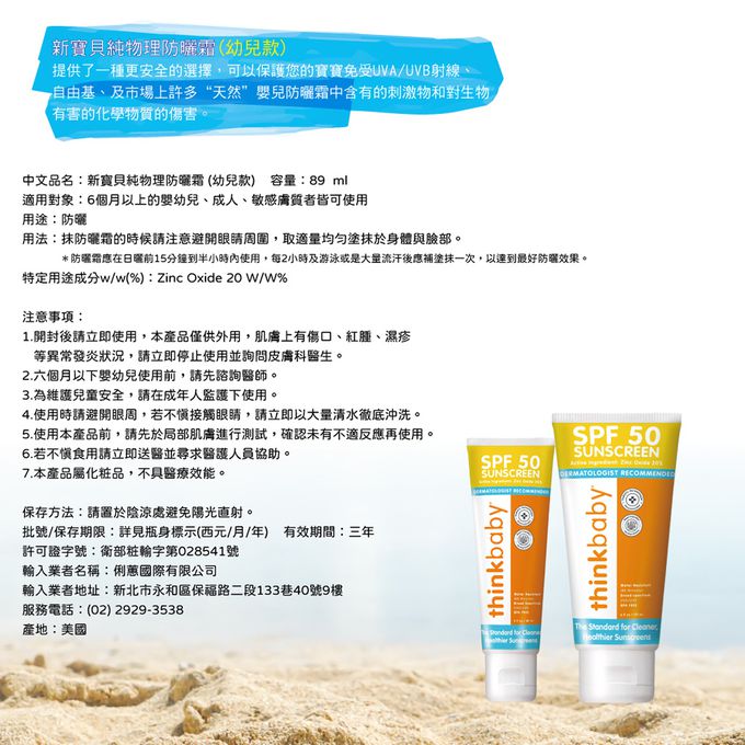 品名:thinkbaby 新寶貝SPF50純物理防曬霜 (幼兒款/thinksport)