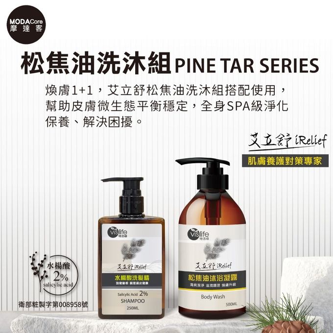 品名:摩達客嚴選-松焦油水楊酸洗沐組(水楊酸松焦油洗髮精(250ml)+松焦油沐浴凝露(500ml)) 全身SPA級淨化