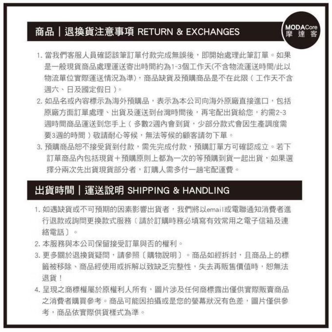 預購商品:預購為海外同步代購,遇缺貨即會通知媽咪並協助取消退款事宜。