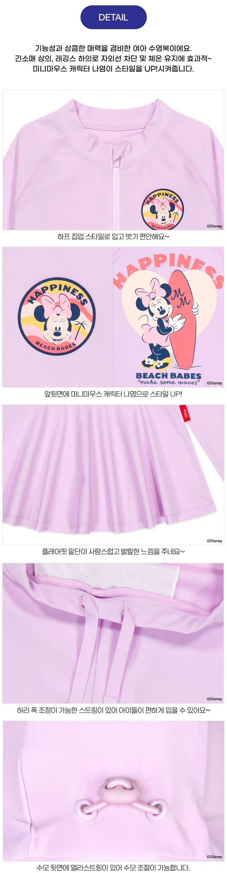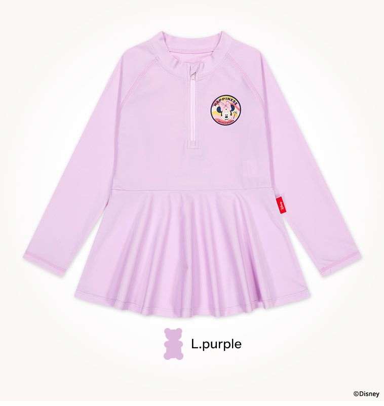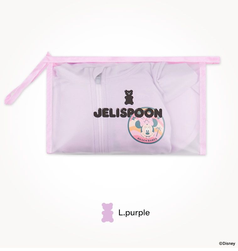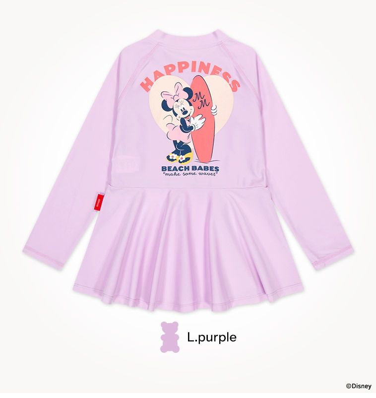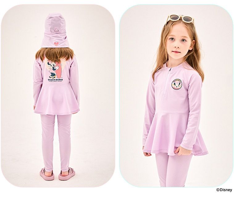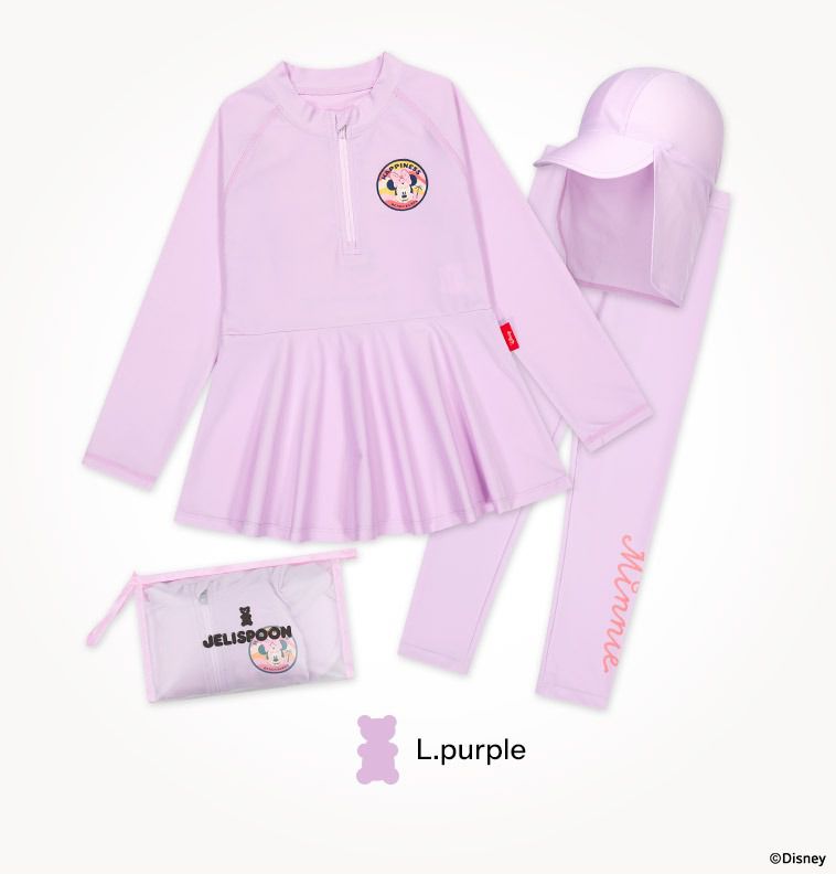 韓國 Jelispoon - UPF 50+二件式長袖泳裝(附遮脖泳帽)-卡通人物米妮-粉紫
