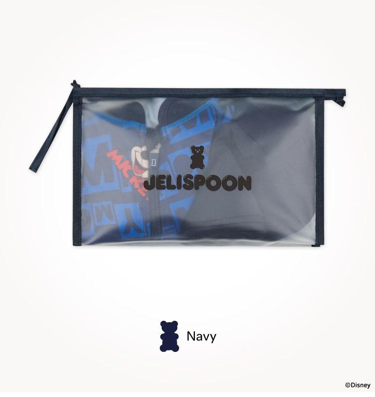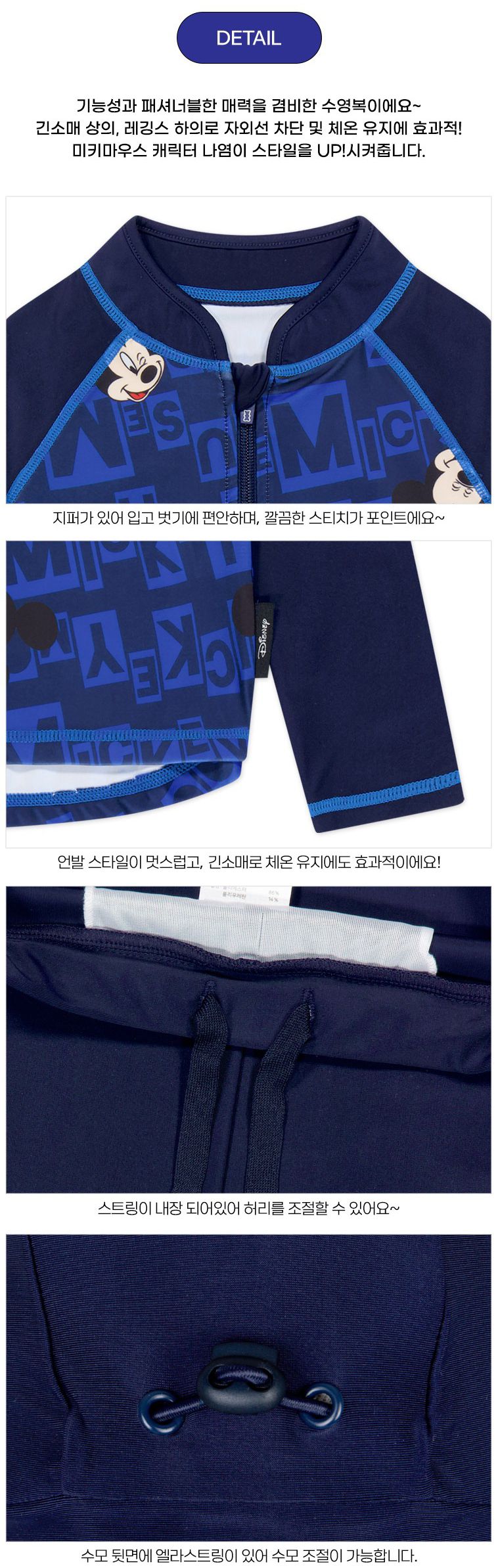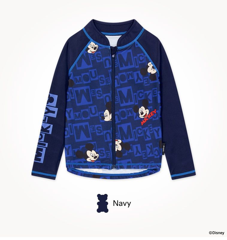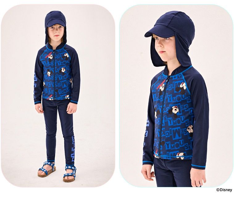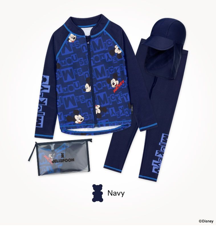 韓國 Jelispoon - UPF 50+二件式長袖泳裝(附遮脖泳帽)-卡通人物米奇-海軍藍