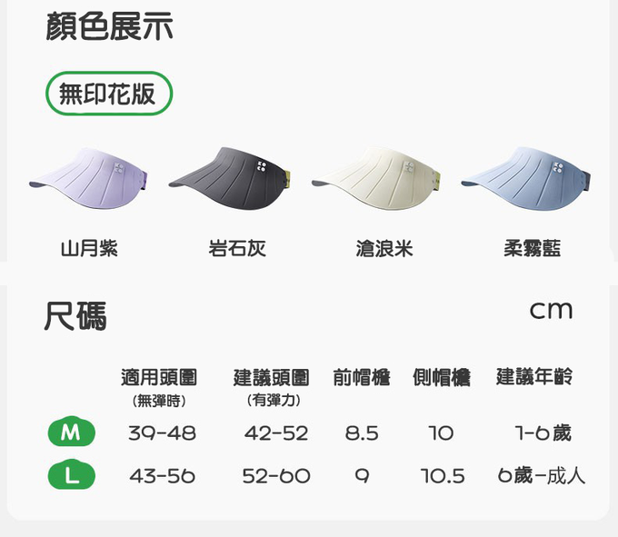 成分:M(39-48CM)1-6歲 L(43-56CM)6歲-成人
