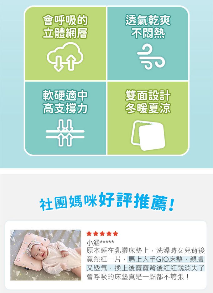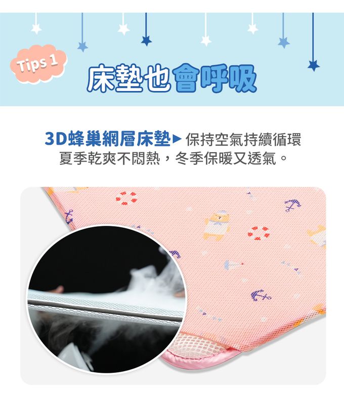床套正面:機能性排汗表面,寶寶舒適不悶熱