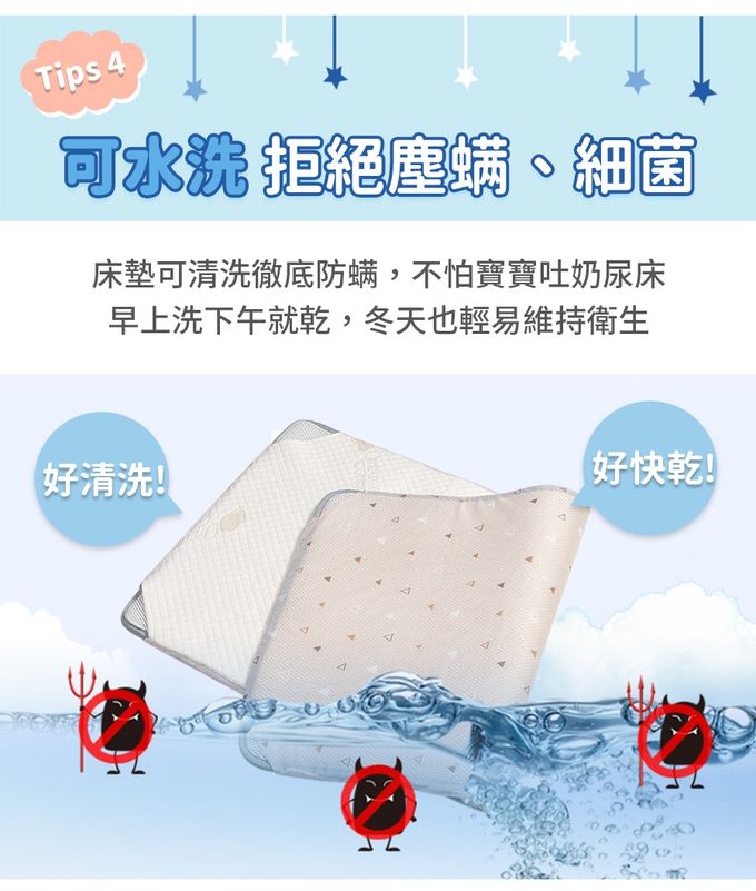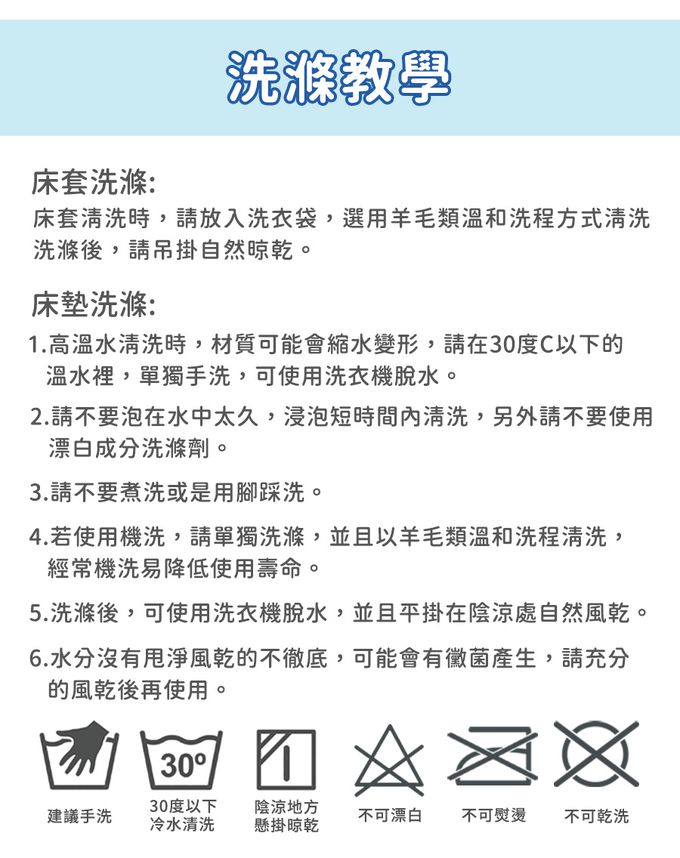 床墊跟床套可拆開個別水洗,徹底洗淨防螨