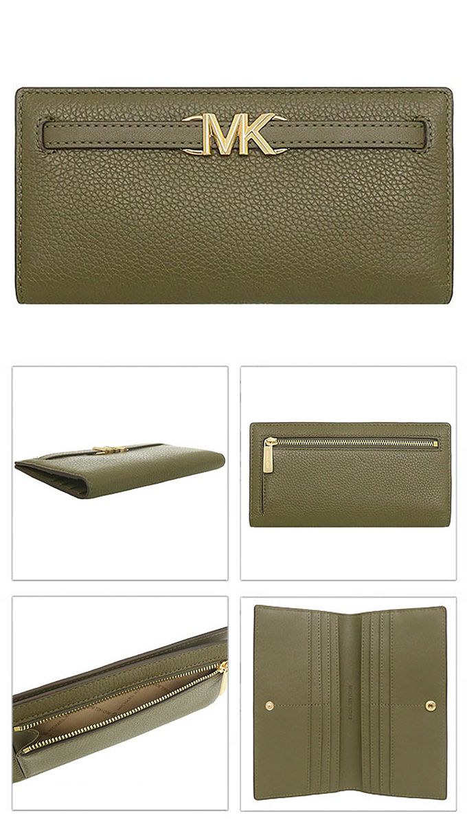 Michael Kors - 荔枝紋皮革釦式長夾 (橄欖綠)
