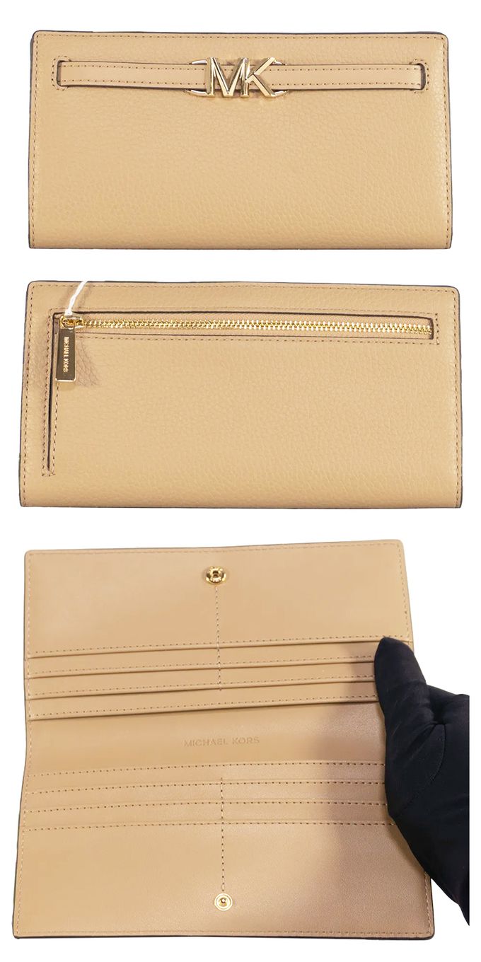 Michael Kors - 荔枝紋皮革釦式長夾 (卡其)