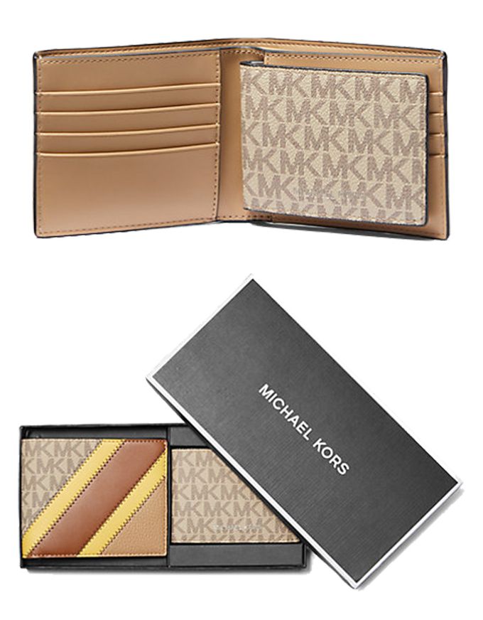 拼接皮革附活動夾短夾禮盒組 (米加黃色)